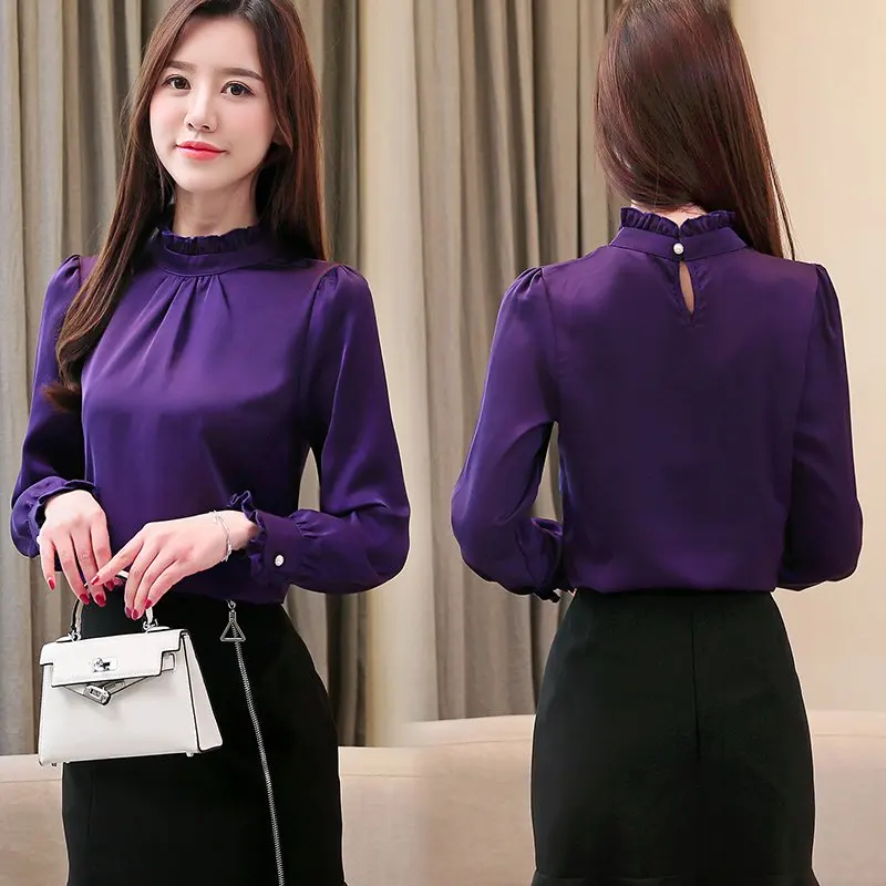 Блузка женская шифоновая с длинным рукавом, офисная, 2020