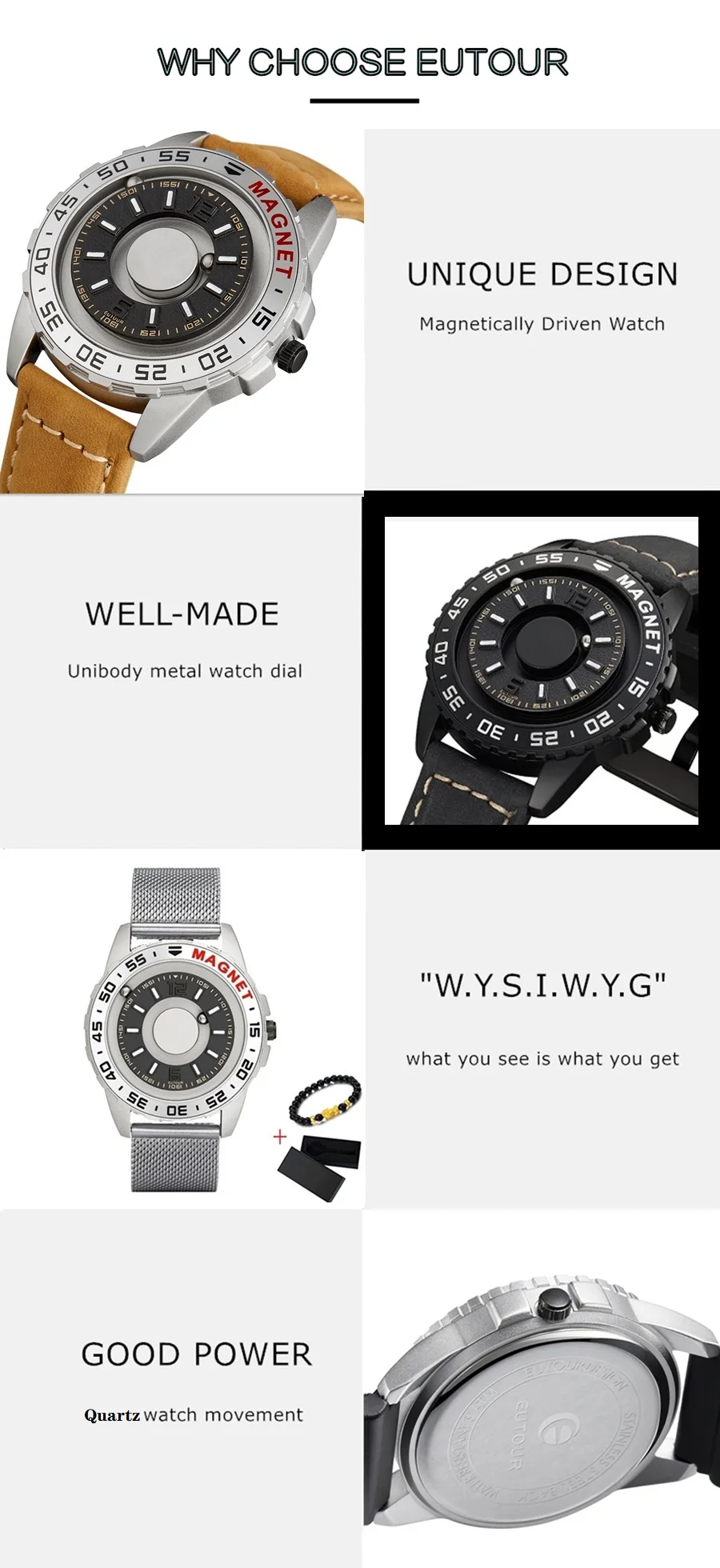 Часы EUTOUR мужские с магнитным шариком, инновационные кварцевые на...