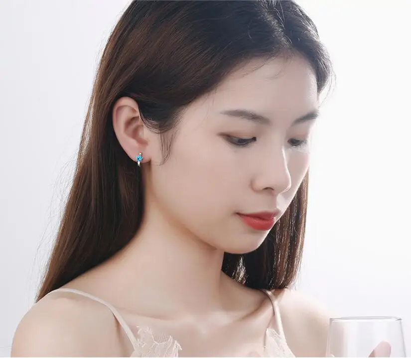 Серьги женские серебряные с голубой звездой, 1 карат, с фианитом