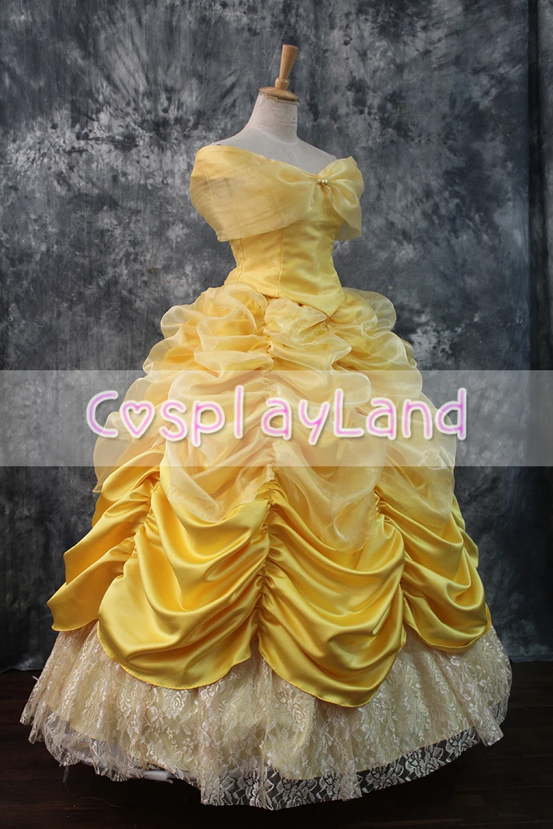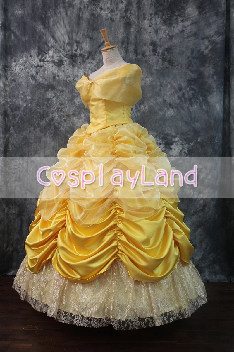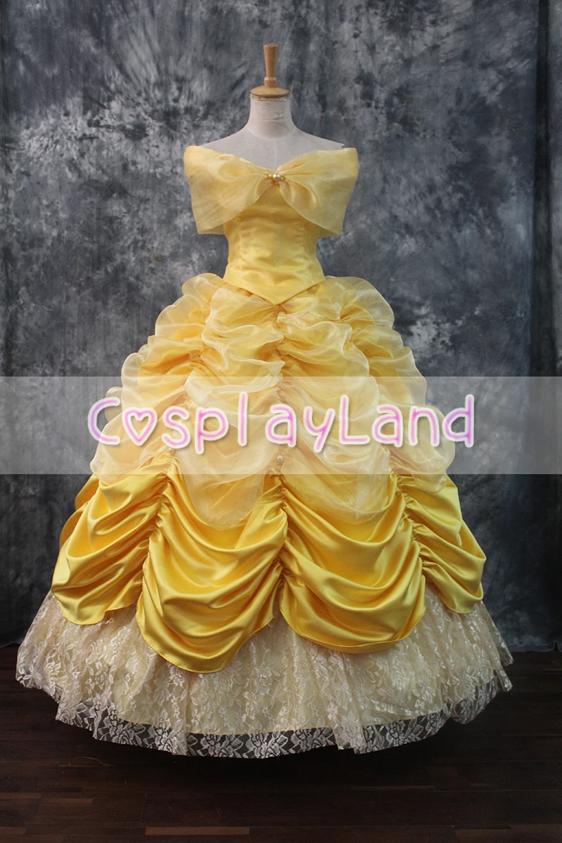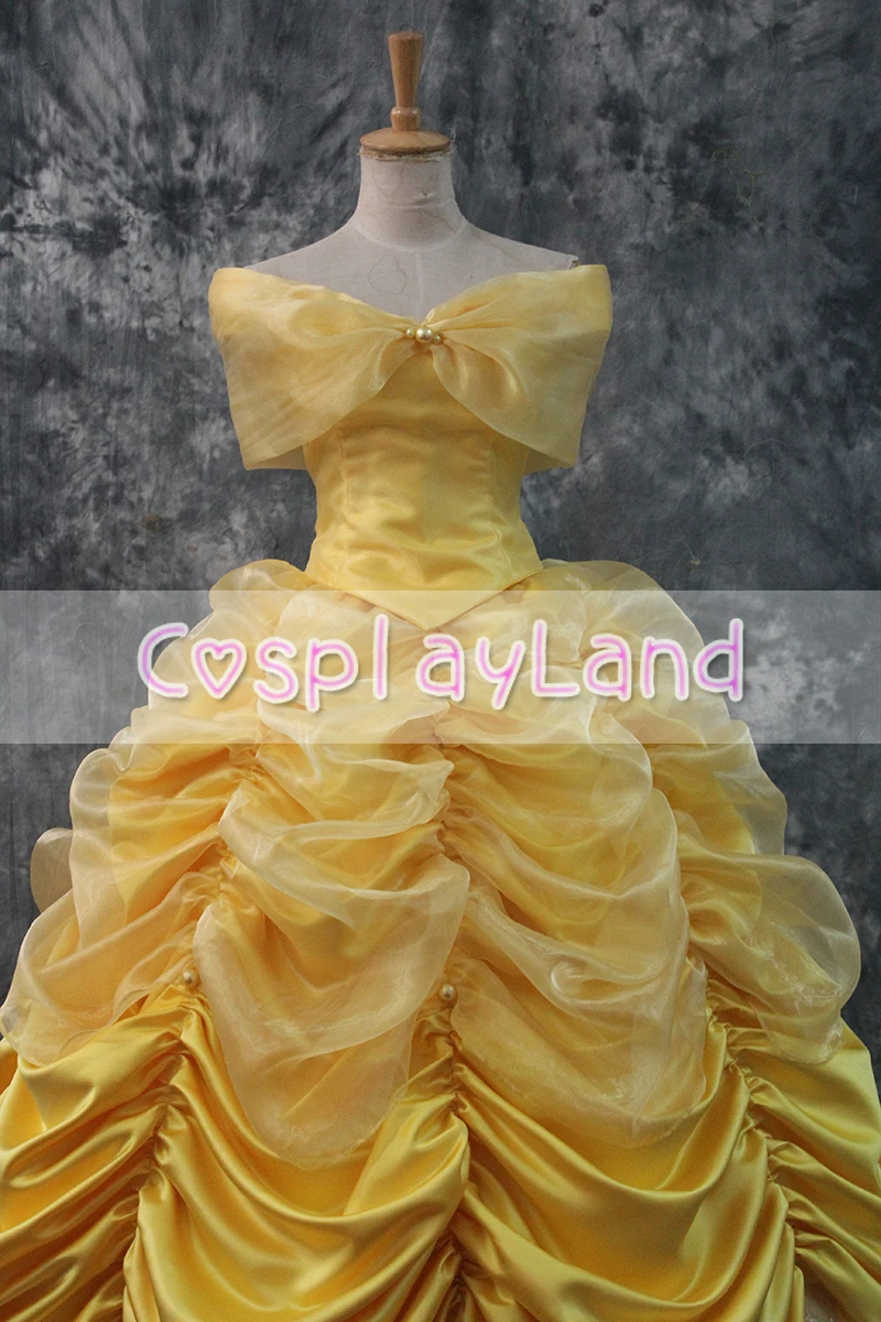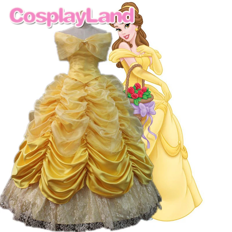 Желтое платье принцессы Белль, маскарадный костюм на Хэллоуин, костюм Белль с открытыми плечами для взрослых, женское платье на заказ