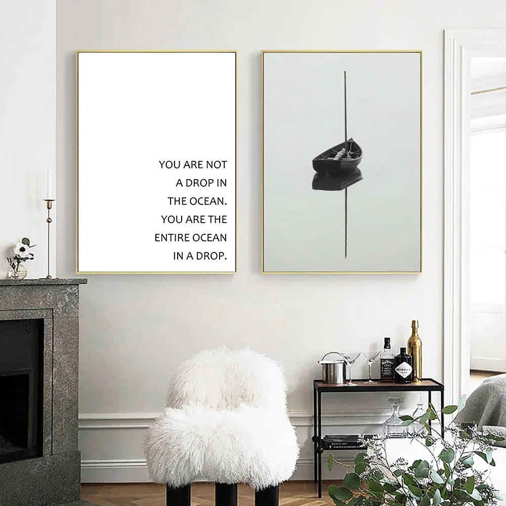 Скандинавский плакат лодка холст живопись вдохновляющая океан цитаты плакат черный и белый минималистичный настенная живопись для декора гостиной