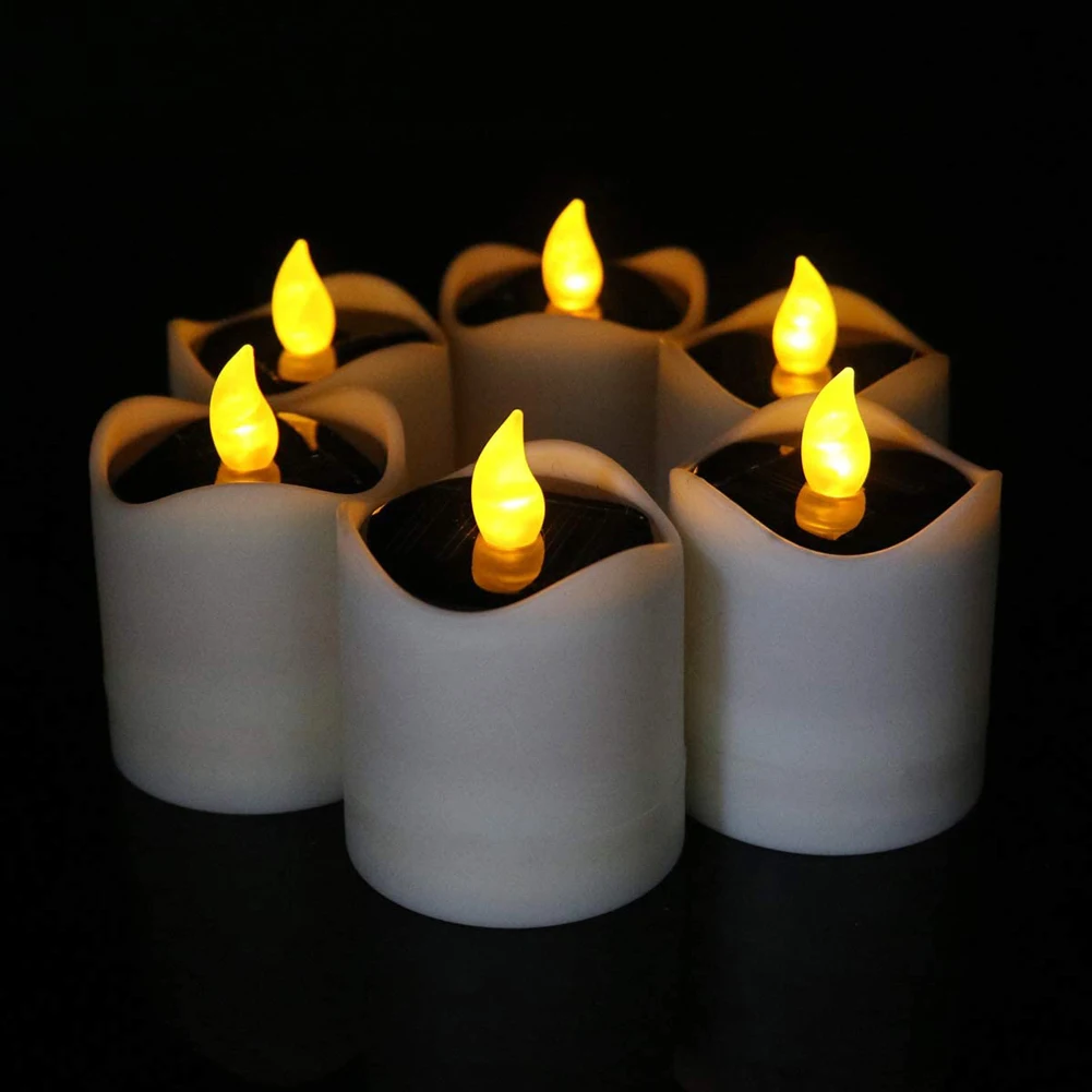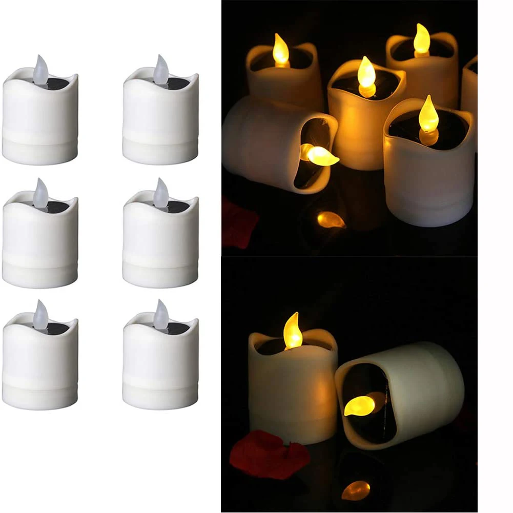 Свечи на солнечной батарее, 6 шт.лот, свечи для чая, мерцающие беспламенные Свечи, электронный светодиодный Ночной светильник на солнечной батарее