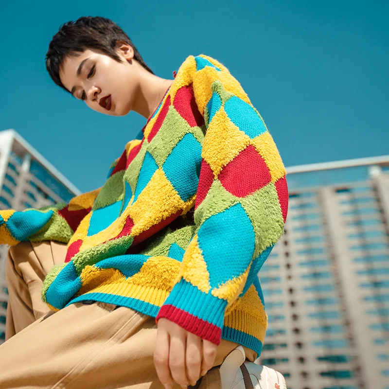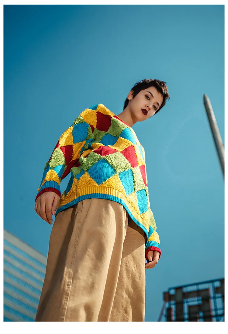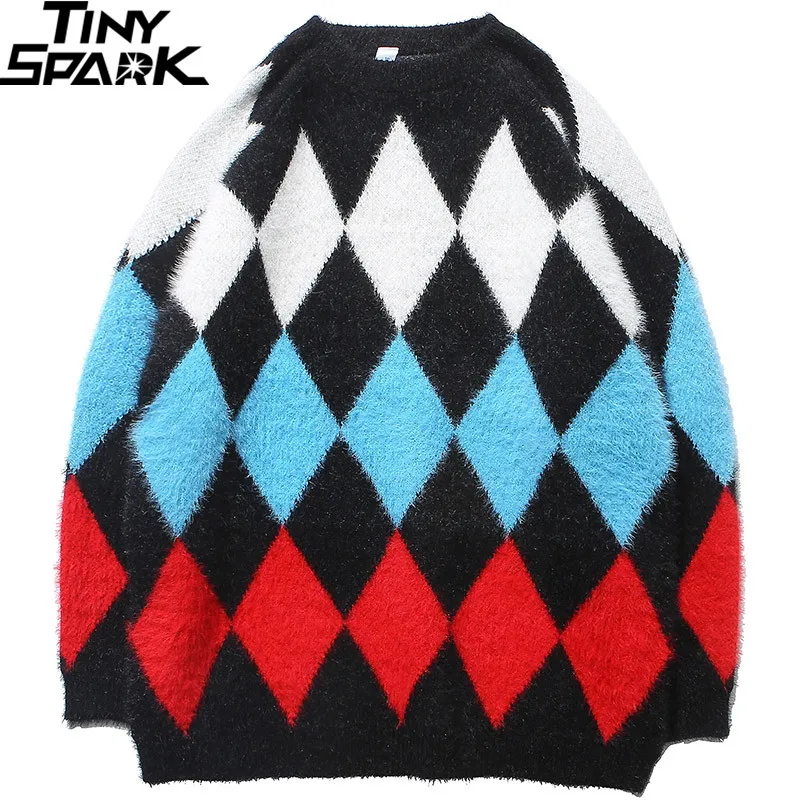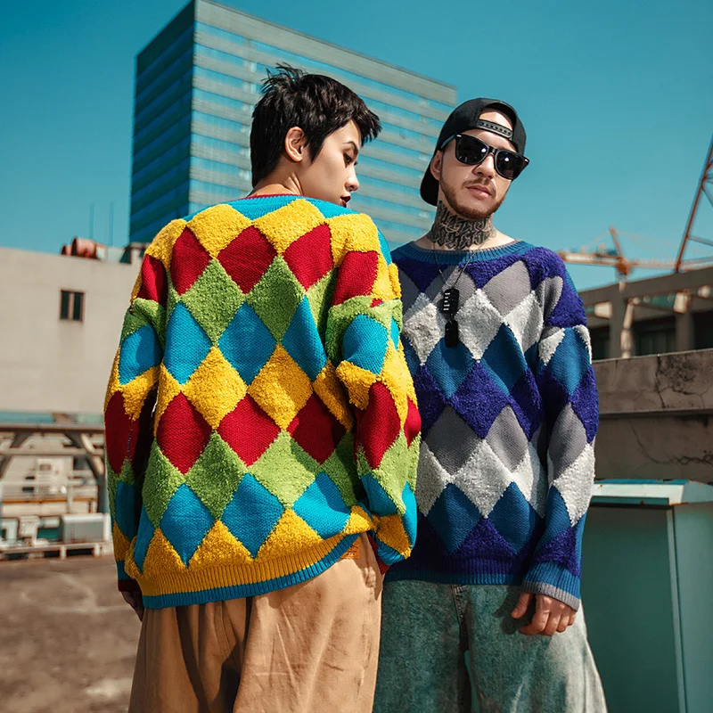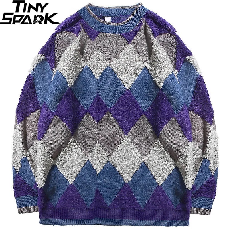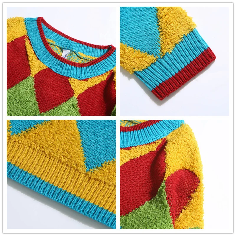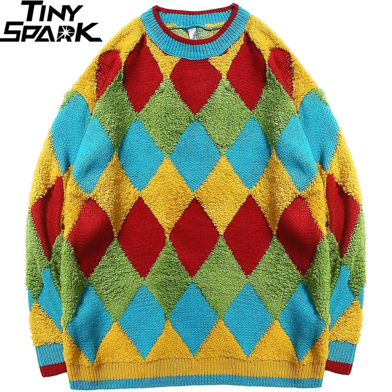 Мужской хип-хоп свитер для улицы в богемном стиле толстый вязаный свитер пуловер Ретро винтажный лоскутный клетчатый свитер осенний хлопковый