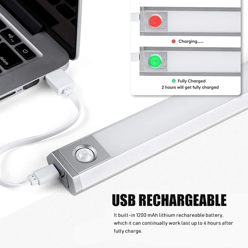 Алюминиевый аварийный светильник с датчиком движения, шкафы с зарядкой от USB, 3 режима температуры, ночное освещение для кухни