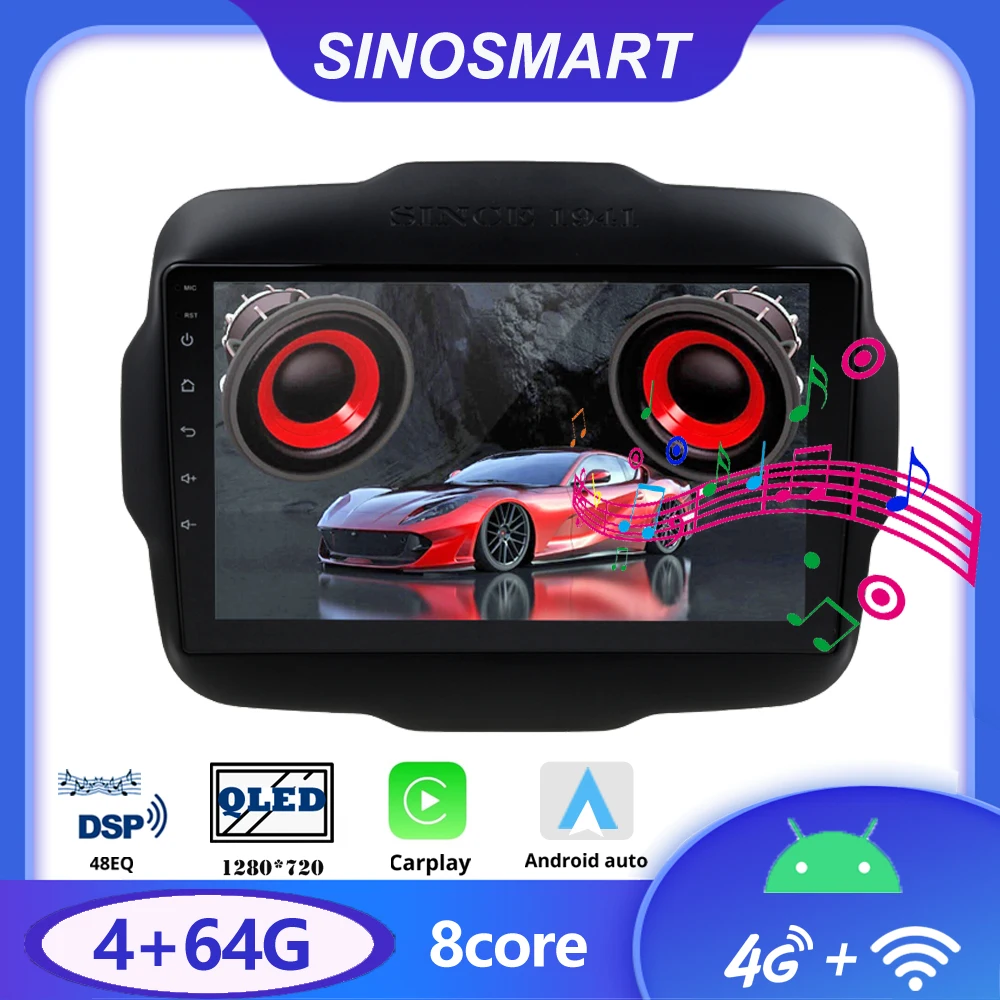 Sinosmart Автомобильный GPS плеер для Jeep Renegade Android 2016-2018 навигационное Радио 8 ядер, DSP 48EQ 2.5D QLED экран