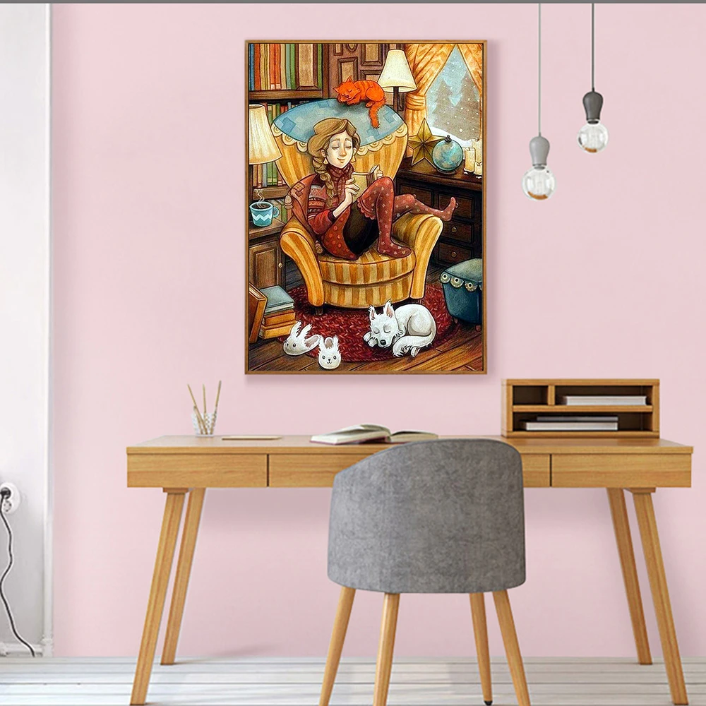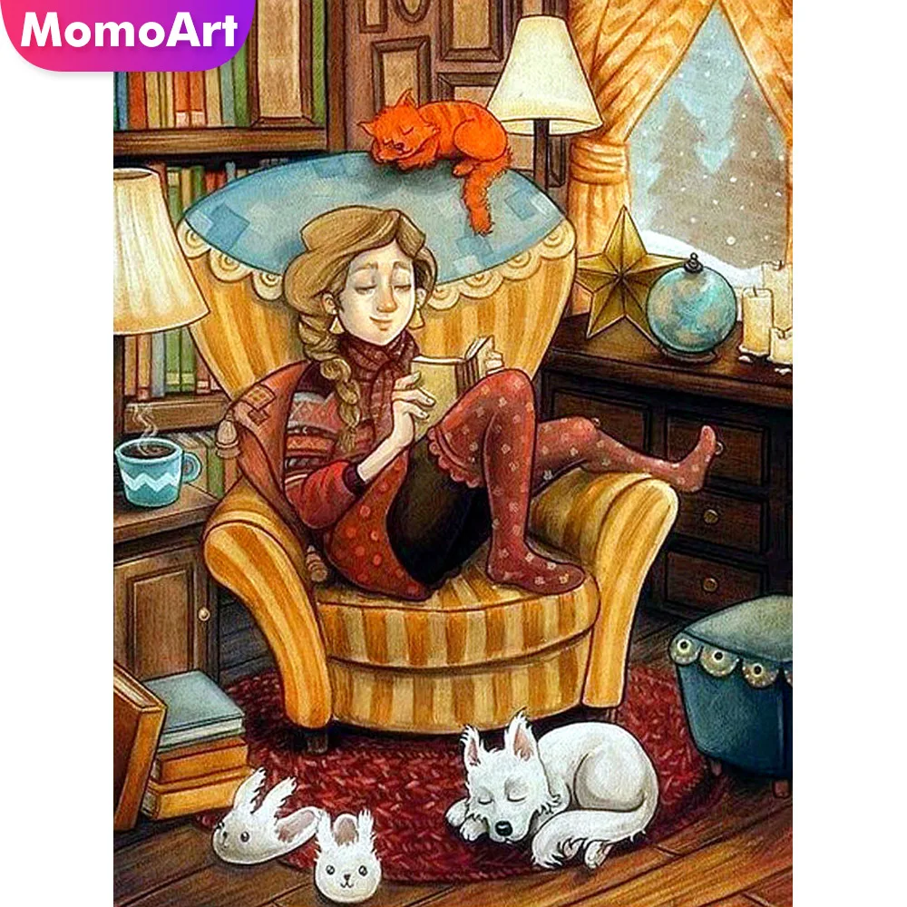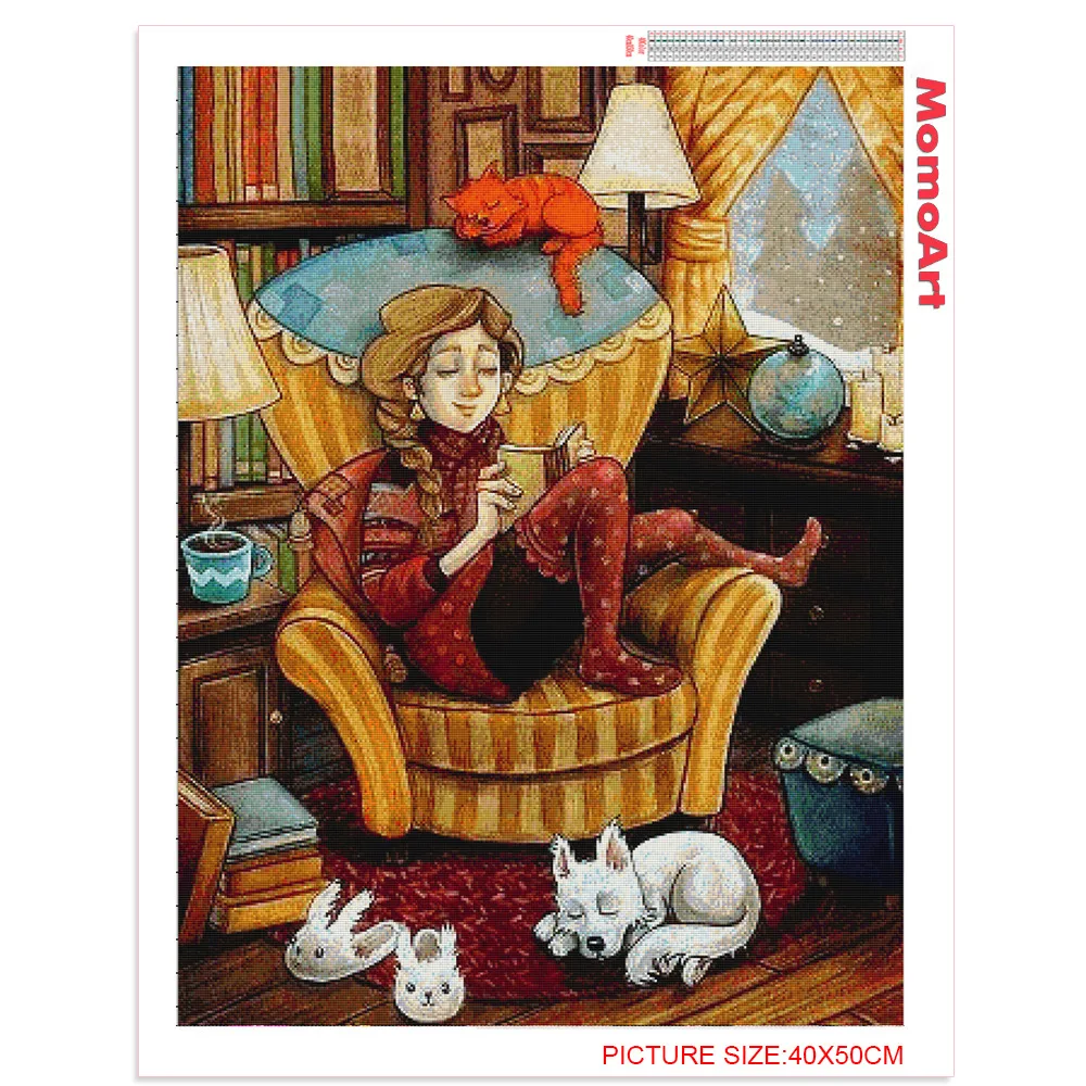 MomoArt Алмазная вышивка, девушка алмазная живопись, полная квадратная стразы, Алмазная мозаика, мультяшное украшение для дома