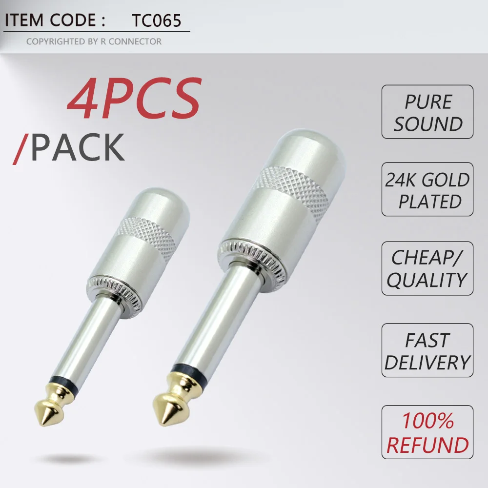 Специальный чехол из цинкового сплава, 4 шт., штекер 14 дюйма, 6,35 мм, моно штекер, позолоченные гитарные педали эффектов, разъем для микрофона