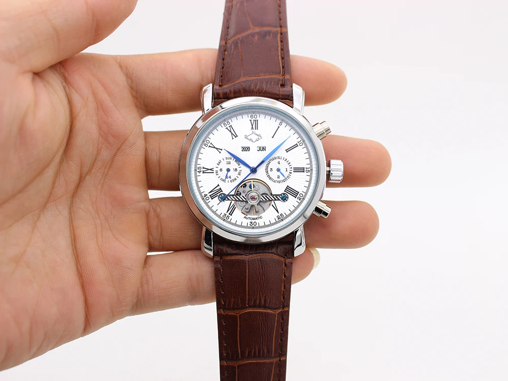 Часы мужские с турбийоном, механические, с календарем, неделей, месяцами