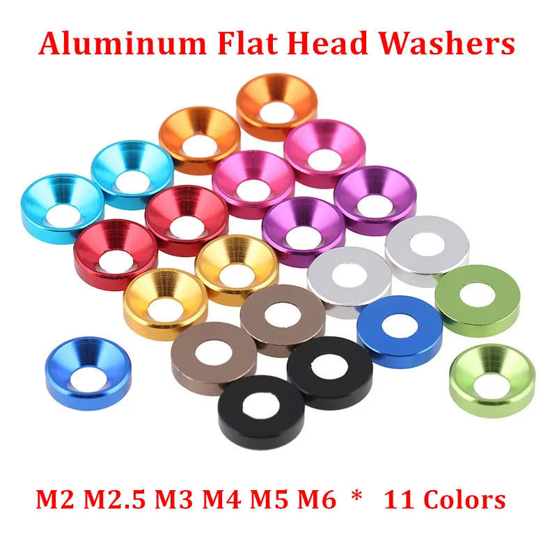Алюминиевая плоская шайба M2 M2, 5 M3 M4 M5 M6, 10 шт., алюминиевая цветная анодированная потайная головка шайбы для болтов, прокладка, 11 цветов