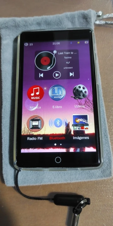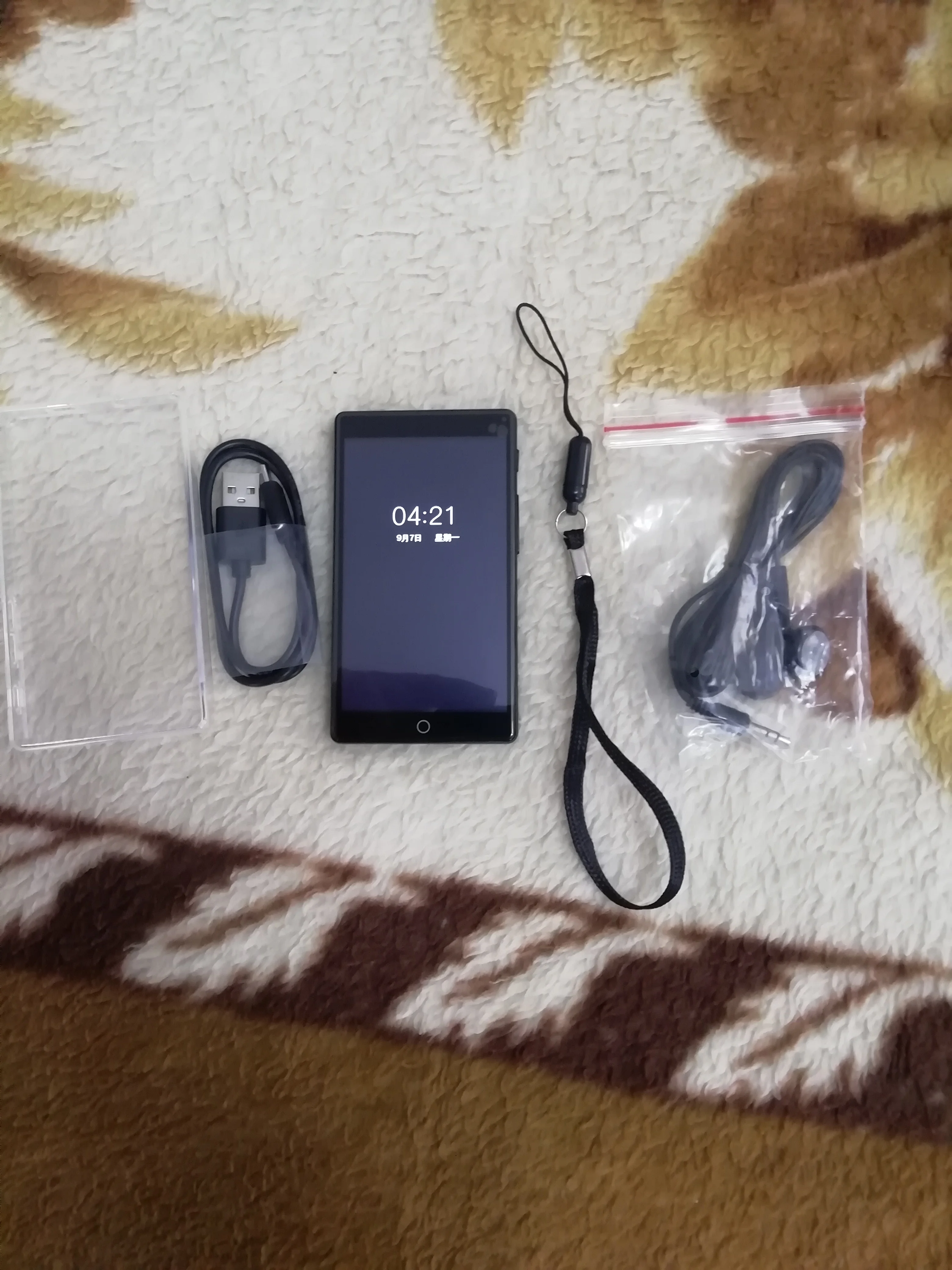 Really great quality item! You get a silicone protective case for it, and a little pouch to store it. I could connect my bluetooth earphones to it easily. Sound quality is nice, the device itself can be used well. When you turn it on for the first time, you can choose the software language. There are a few different backgrounds you can choose from. Overall I really like it and I recommend it!