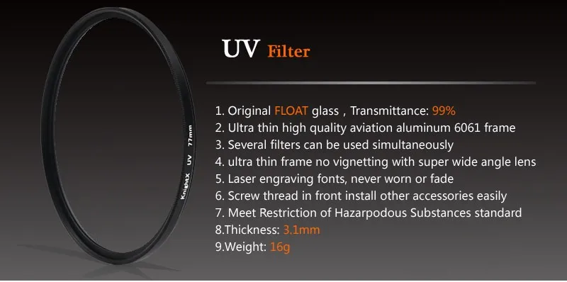 Ультратонкие фильтры серии KnightX HD-MCUV использовали специальную технологию двусторонних 18 многослойных линз