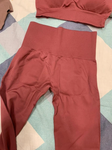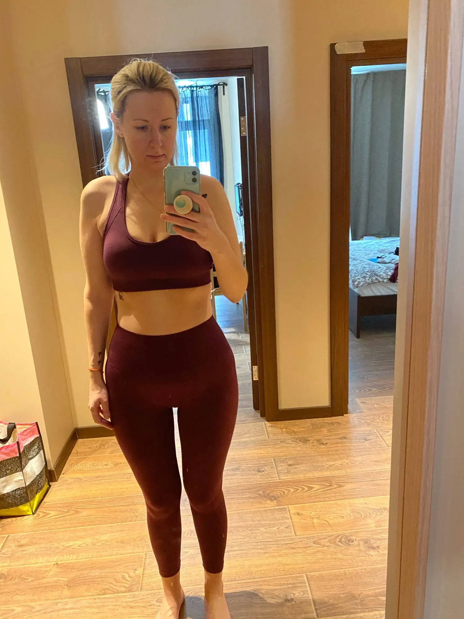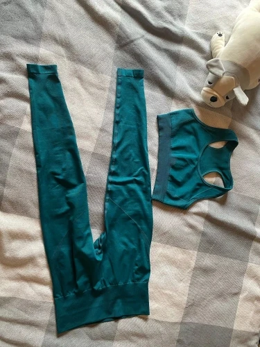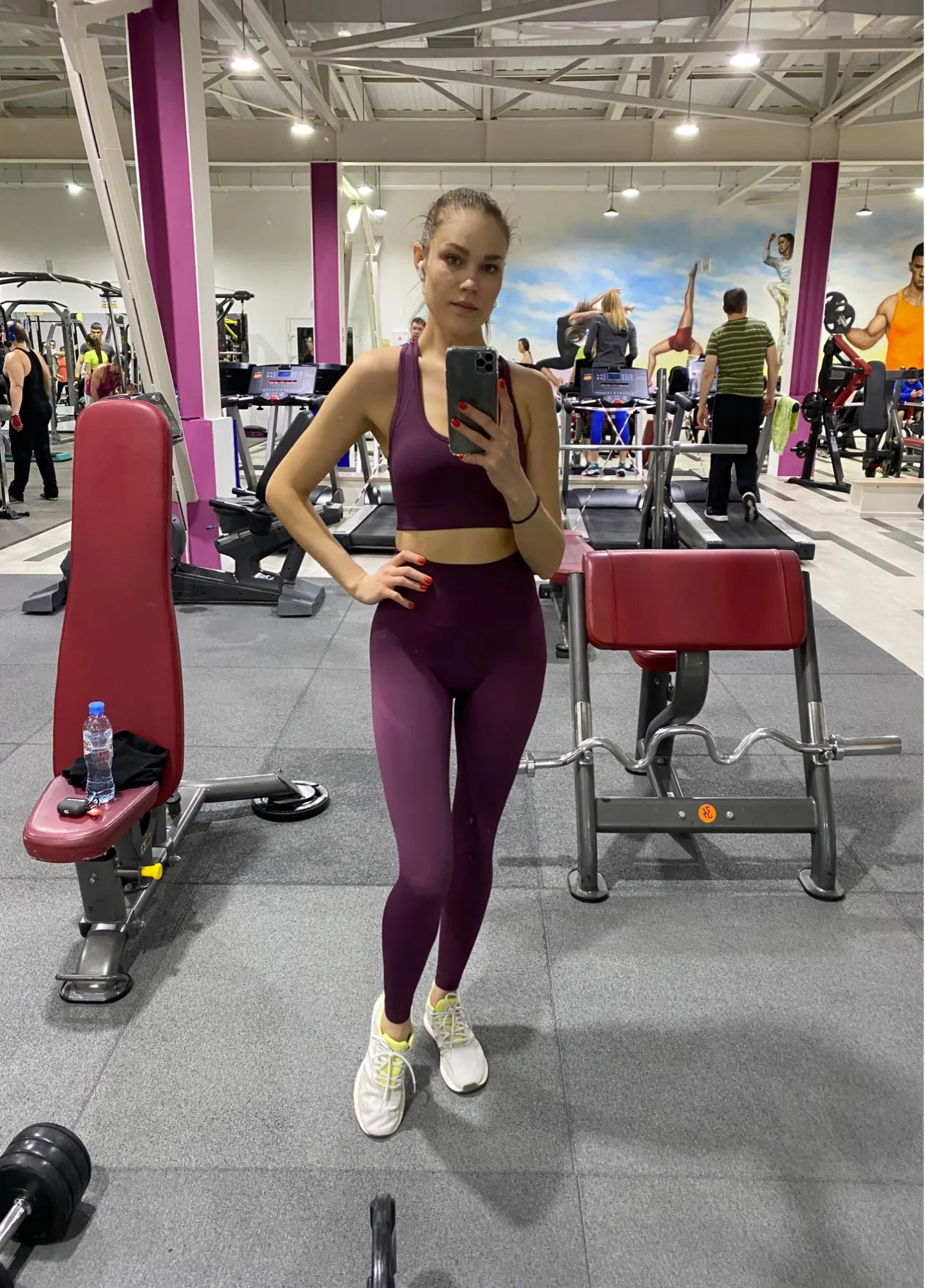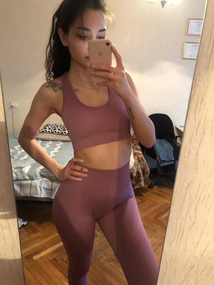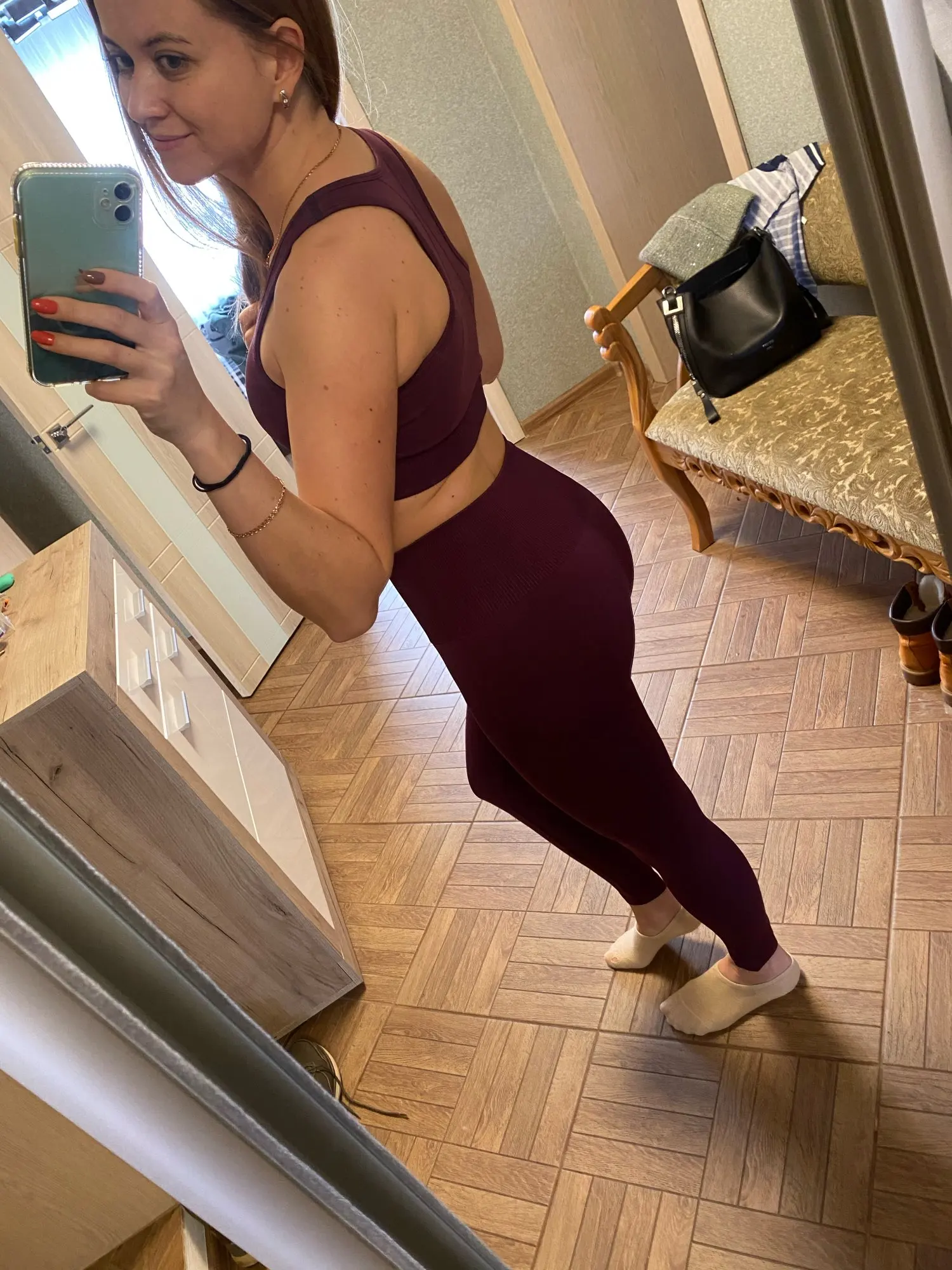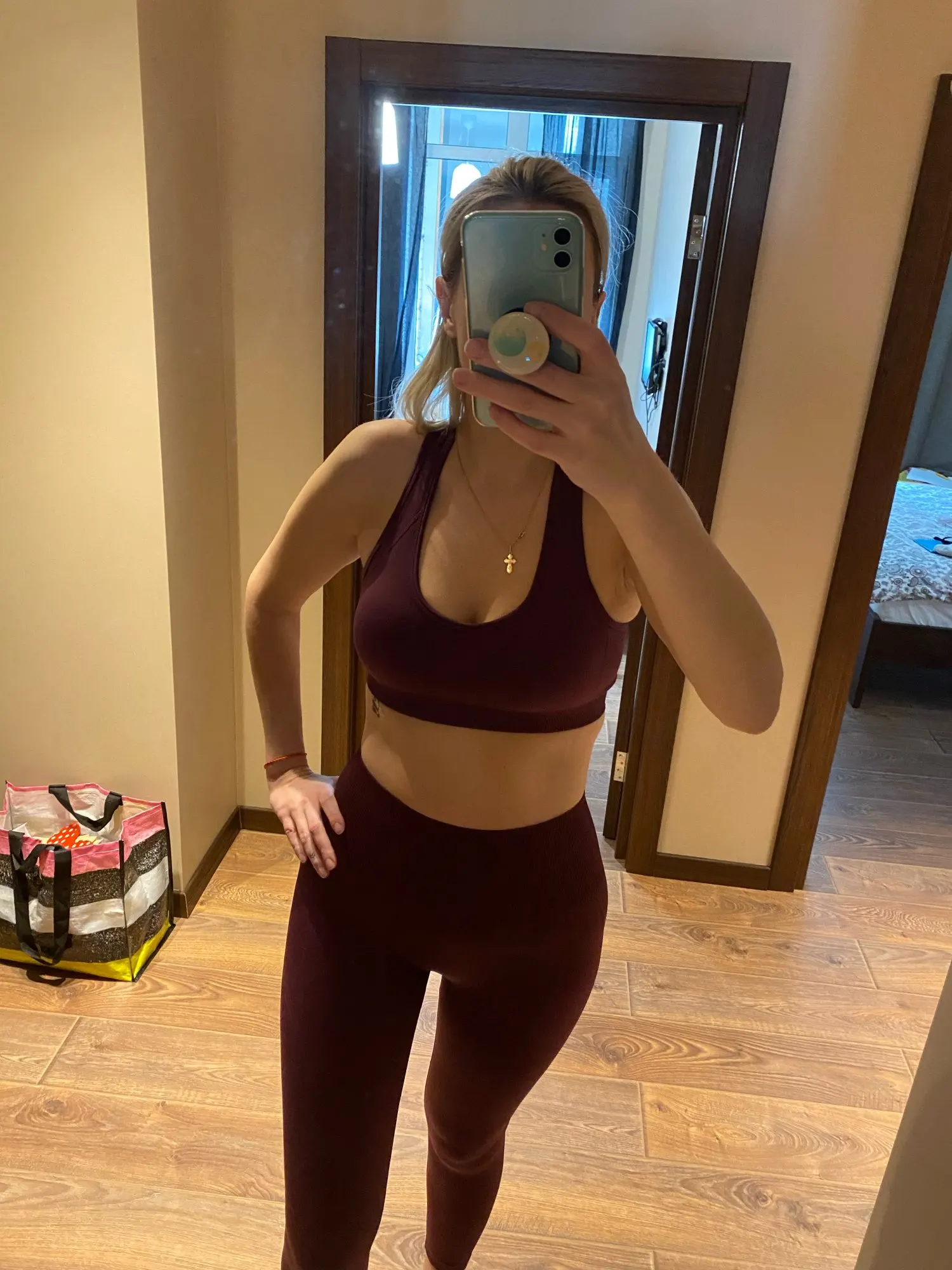 Костюм просто опупительный! Компрессия хорошая, мышцы все держит. Цвет точно как на фото. И он просто восхитительный. Переживала за топ, но зря. Сел хорошо, не плющит. Есть вставки-чашечки. Лосины не светят. А с бесшовным бельём вообще ничего видно не будет. Не смотря на то, что ткань плотная и с утяжкой, попу не уплощают. Довольна как слон! Посмотрю как в носке и закажу в других цветах. Доставка до Москвы быстрая в Пятёрочку. Спасибо продавцу.