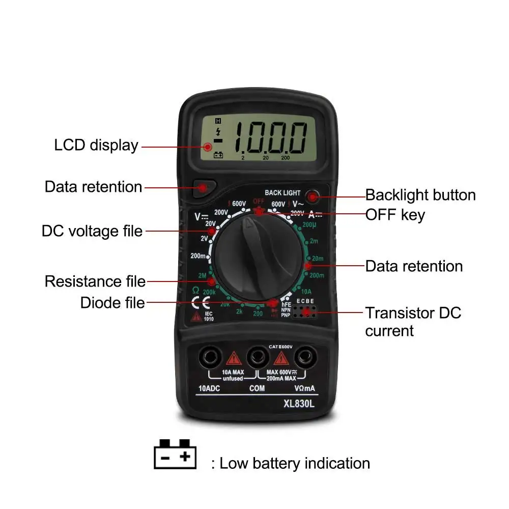 XL830L Цифровой мультиметр ESR метр AC DC тестеры автомобильные электрические DMM транзистор пиковый тестер фарадметр метр