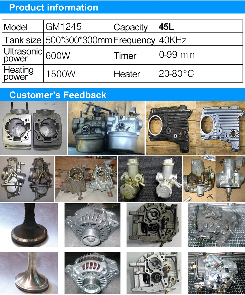 Промышленный ультразвуковой очиститель Granbo 45 л с CE/ROHS/FCC для различных запасных частей, обезжиривание/удаление масла, ржавчины, углерода