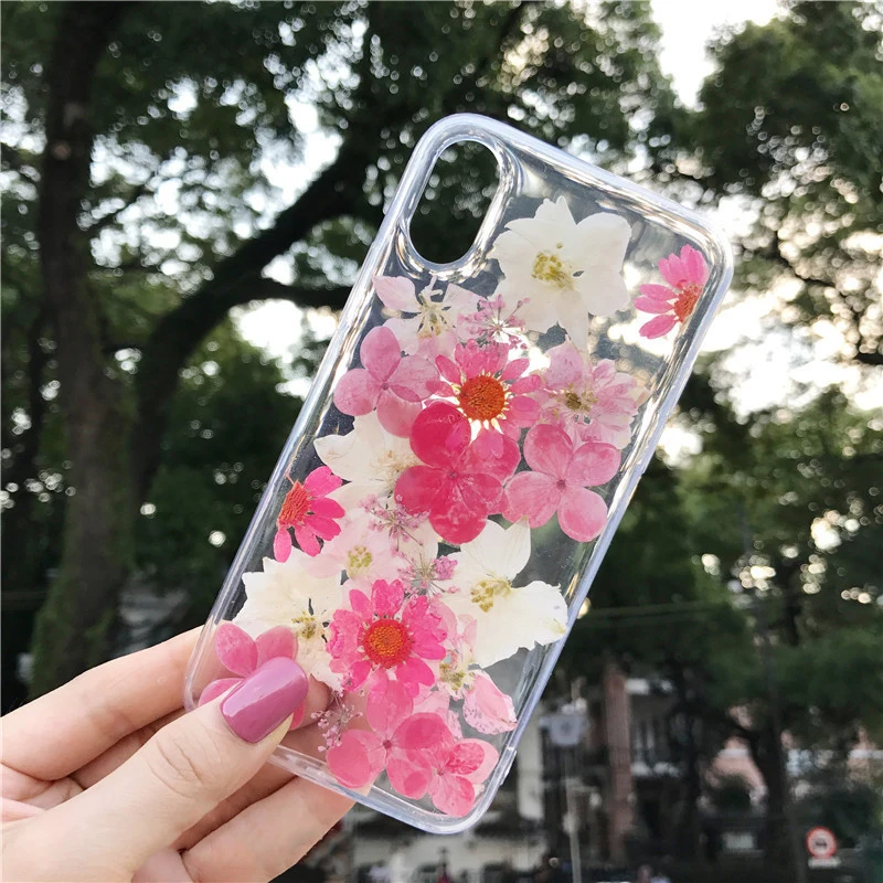 Настоящее сухих цветов Розы Прозрачный мобильный телефон чехол модная красивая для Iphone 7 8 X S R MAX мягкий чехол для мобильного телефона
