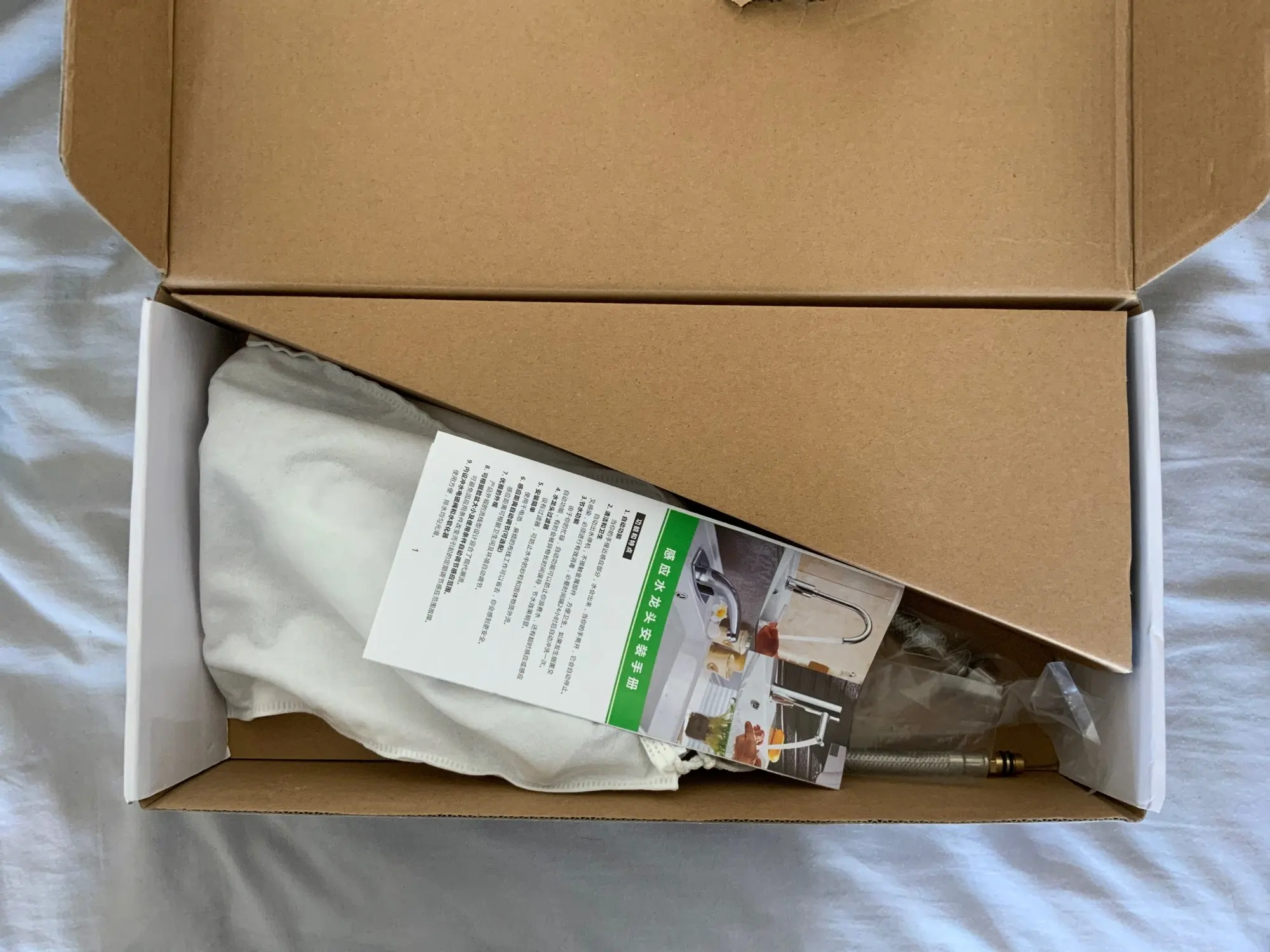 Доставка 10 дней до Челябинска! Упаковка пришла целая, содержимое соответствует фото товара на сайте. Для полноценного подключение дополнительно приобрел аккумуляторные батареи типа "АА" 4 шт., 2 шт. гибких подводки. Единственный минус: не разобрался как настроить напор воды.