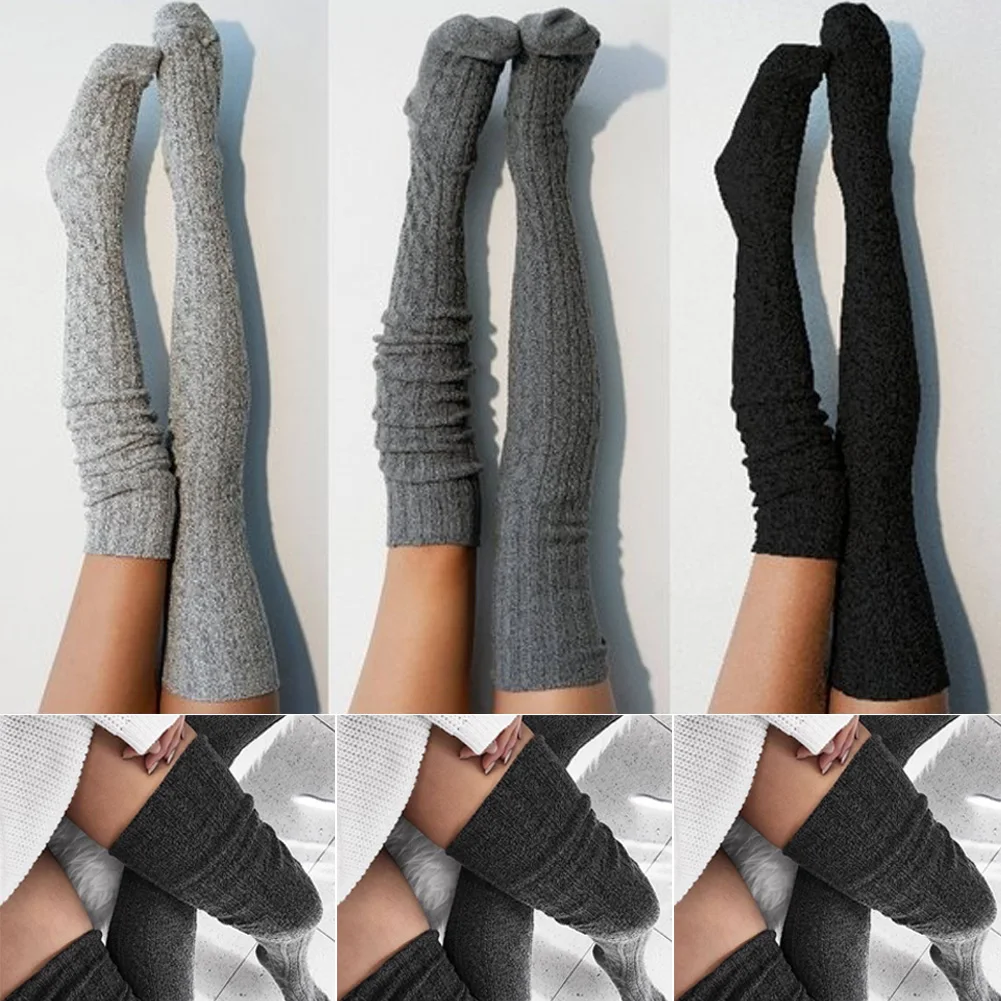 Новинка, модные женские чулки выше колена, теплые длинные вязаные ч...