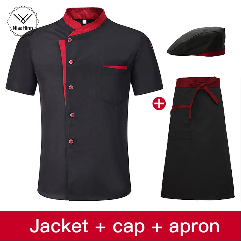 Мужская и Женская куртка NiaaHinn с коротким рукавом, воздухопроницаемая куртка шеф-повара для ресторана, кухни, Рабочая форма, одежда для выпечки, шляпа шеф-повара