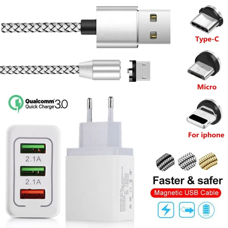 Магнитный USB-кабель для зарядки для Samsung XiaoMi Xiomi Mi A1 A2 ...