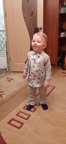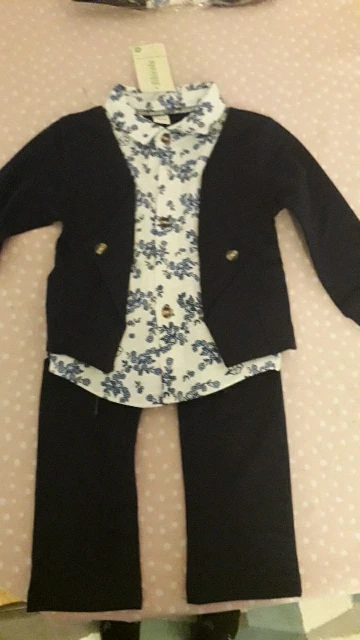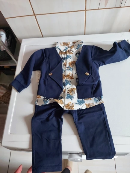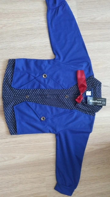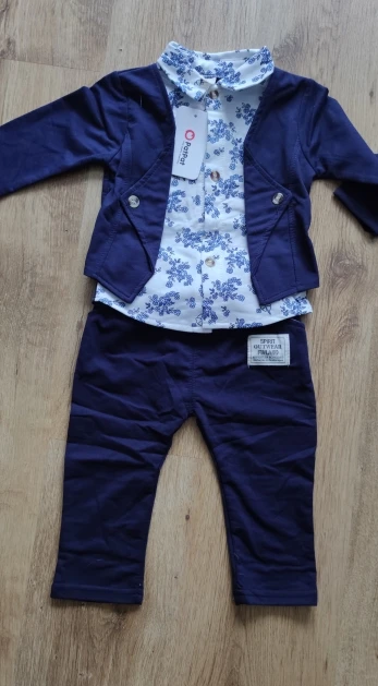 Костюм понравился, трикотажный. Рубашка (трикотаж) и пиджак это 1 вещь. Размер брала 12м на годик, немного большеват, на пухлого ребеночка было бы как раз. В Польшу пришло за 2 недели
