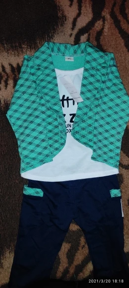 Костюмчик мне очень понравилось. Супер красивый как на фото. Рекомендую продавца. очень общительная. Один минус ➖ после вскрытие посылку надели галстук, к сожалению сразу отклеился. продавец положил резинку для волос в подарок. Это очень приятно.
