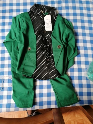 Быстрая доставка. Пошив качественный. Но будьте внимательны - пиджачок с рубашкой идут как обманка. Я описание не читала, решила, что отдельно как самостоятельные вещи, поэтому расстроилась. В остальном всё отлично.