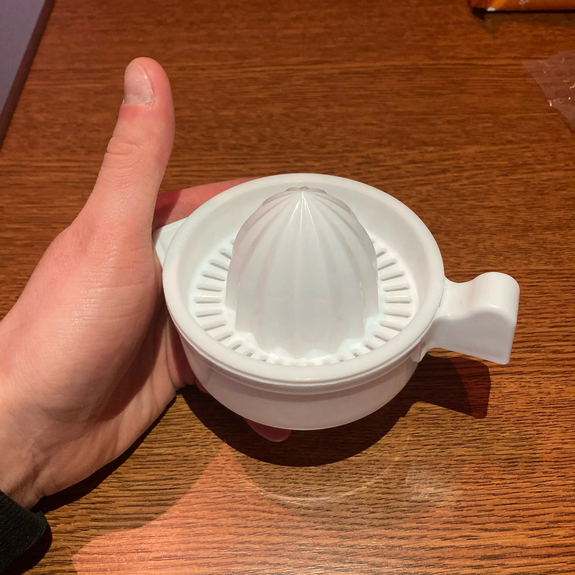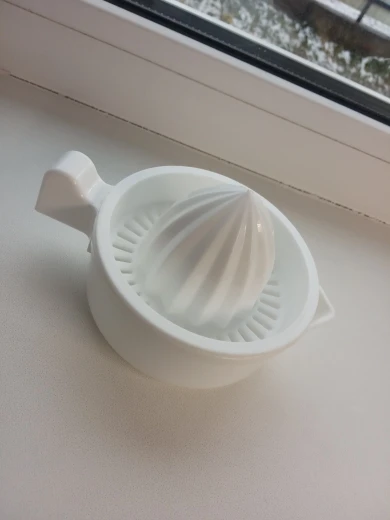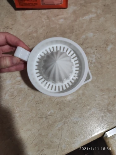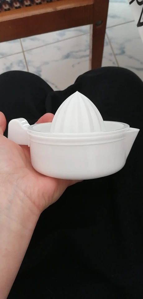Товар соответствует описанию. Продавец отправил заказ быстро. Доставка быстрая. Товаром довольна, качество отличное, без повреждении, пластик прочный. Думаю только среднего размера фрукта войдёт сок. Мне то, что нужно. К покупке рекомендую.