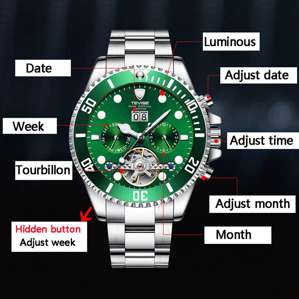 TEVISE автоматические механические часы Tourbillon спортивные роскошные Брендовые мужские часы с автоподзаводом мужские наручные часы Relogio Masculino