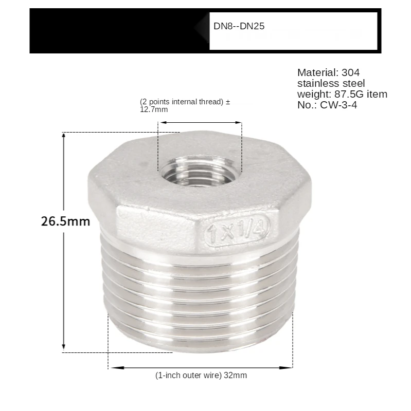 Втулка редуктора из нержавеющей стали, 18 дюйма, 14 дюйма, 38 дюйма, 12 дюйма, 34 дюйма, 1 дюйм, 1-14 дюйма, NPT штекер-гнездо, 304 дюйма