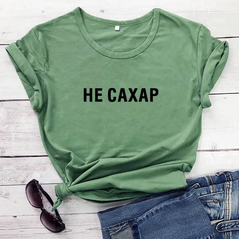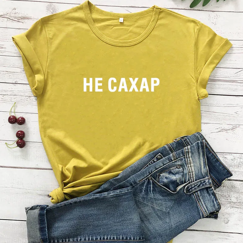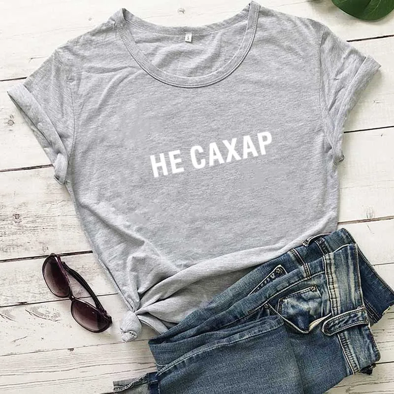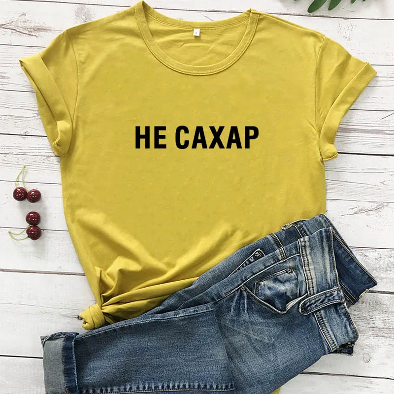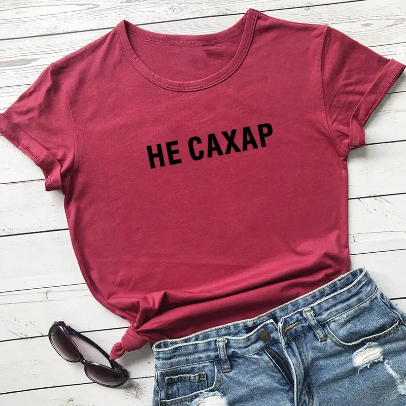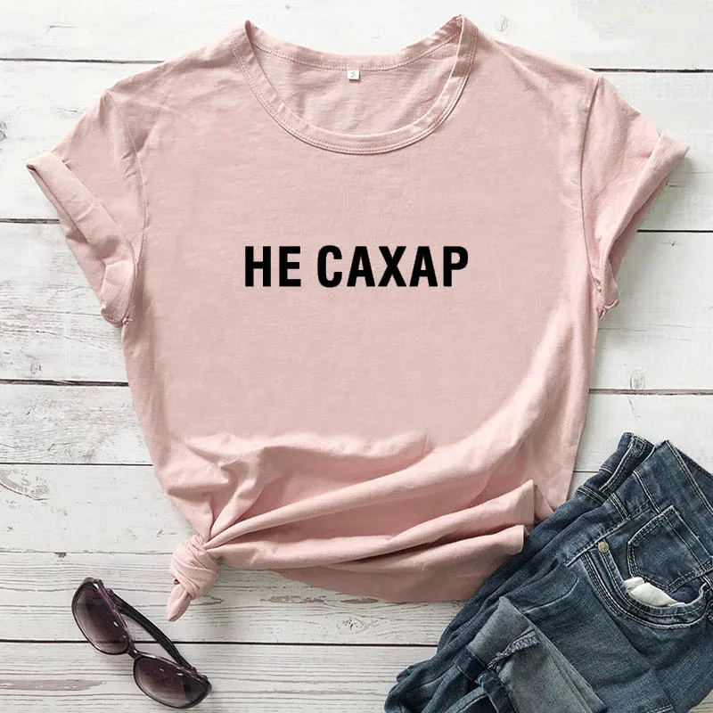 Не сахарный принт в виде русских букв, Новое поступление, Женская забавная рубашка, летние хлопковые топы с короткими рукавами, футболка для женщин