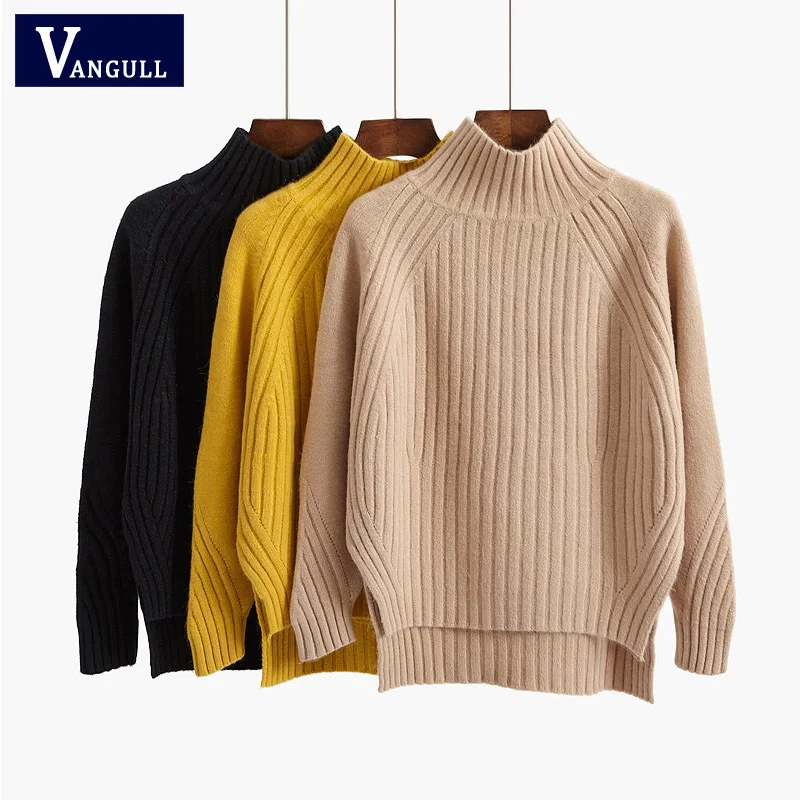 Vangull женский свитер с высоким воротником, зимний теплый женский джемпер, плотные Рождественские свитера, вязаный пуловер в рубчик, топ, женский свитер