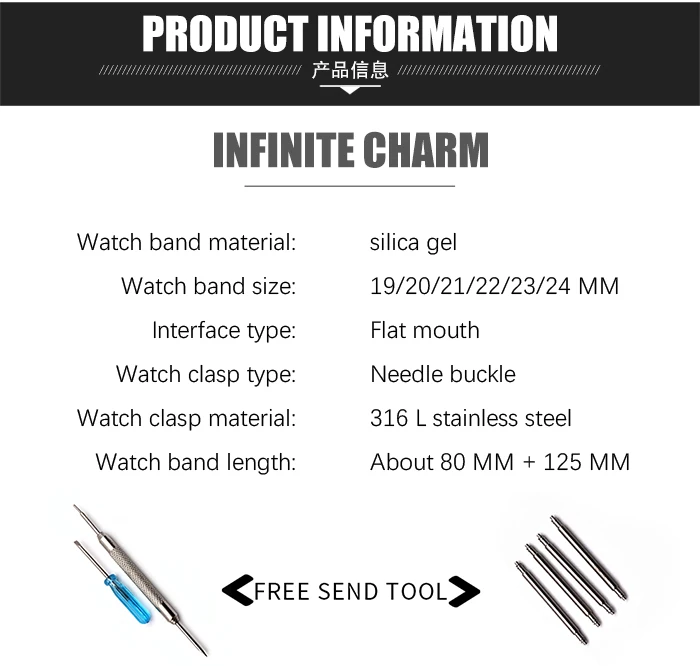 24 мм x 11 мм высококачественный силиконовый резиновый ремешок для ...