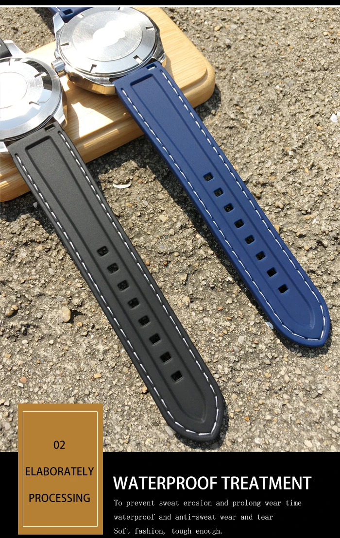 Ремешок для часов, резиновый, силиконовый, водостойкий, 20 мм, 21 мм, 22 мм