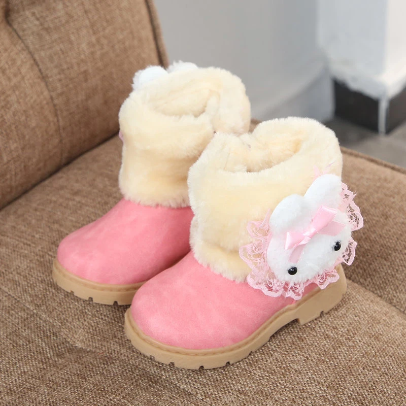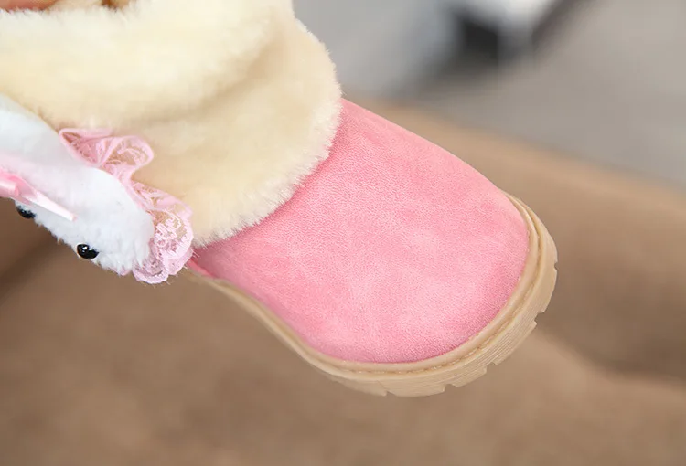 Ботинки для девочек, зимние, теплые, хлопковые, с мультяшным Кроликом, на шнуровке, 2021
