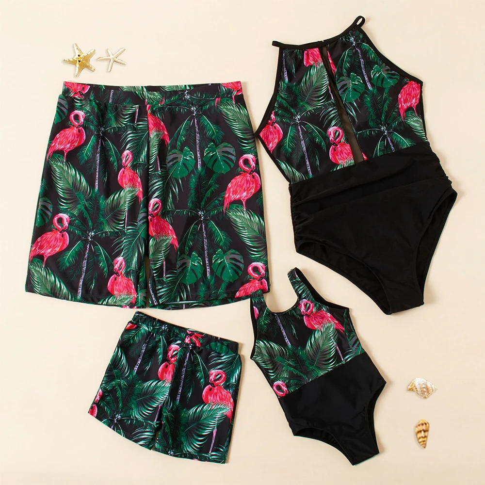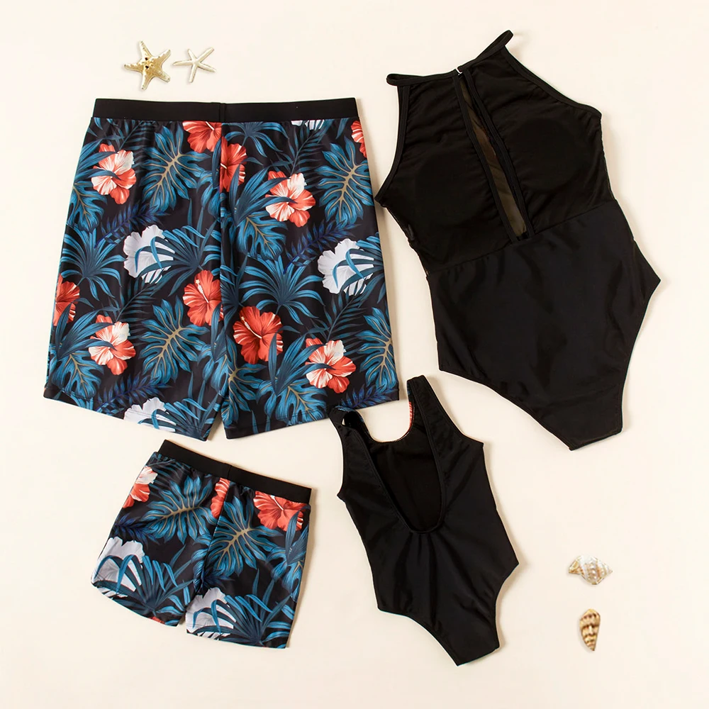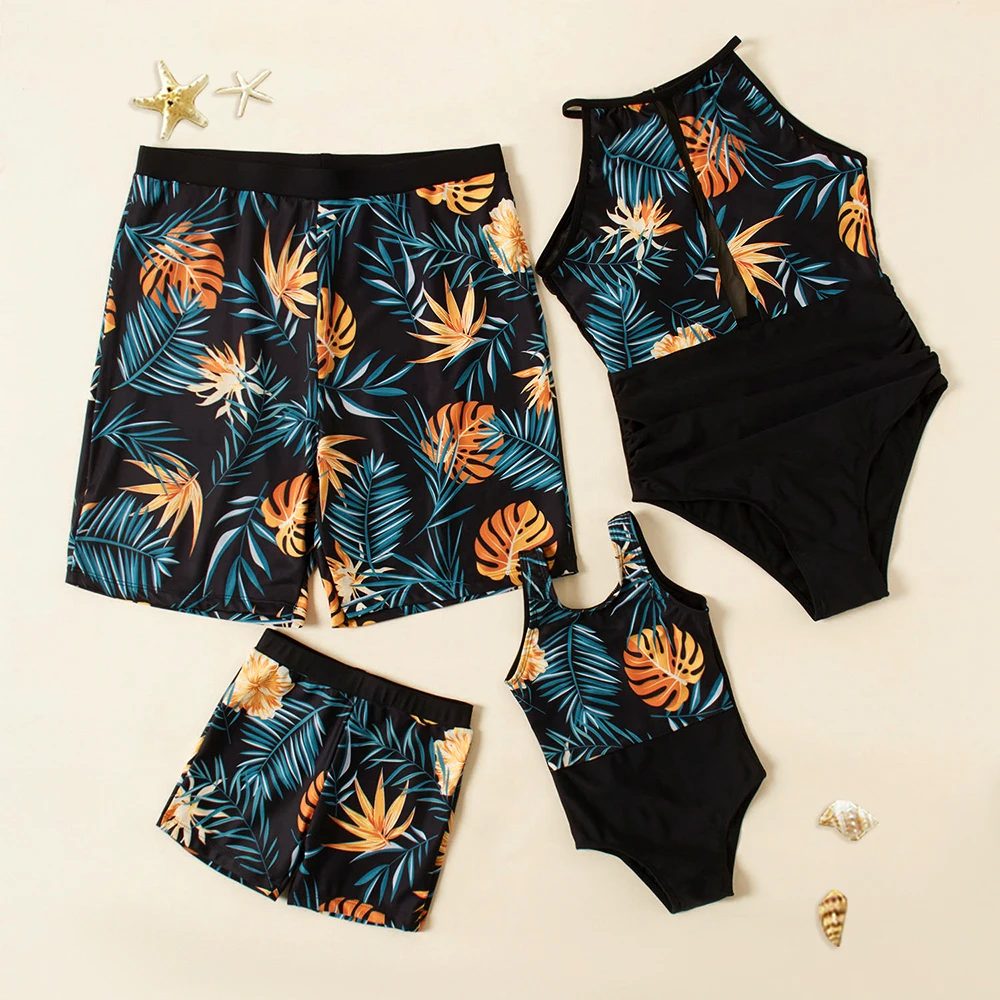 Купальник с цветочным принтом, Семейные костюмы, купальник-бикини для мамы и дочки, одежда для мамы и ребенка, плавки для плавания для папы и сына
