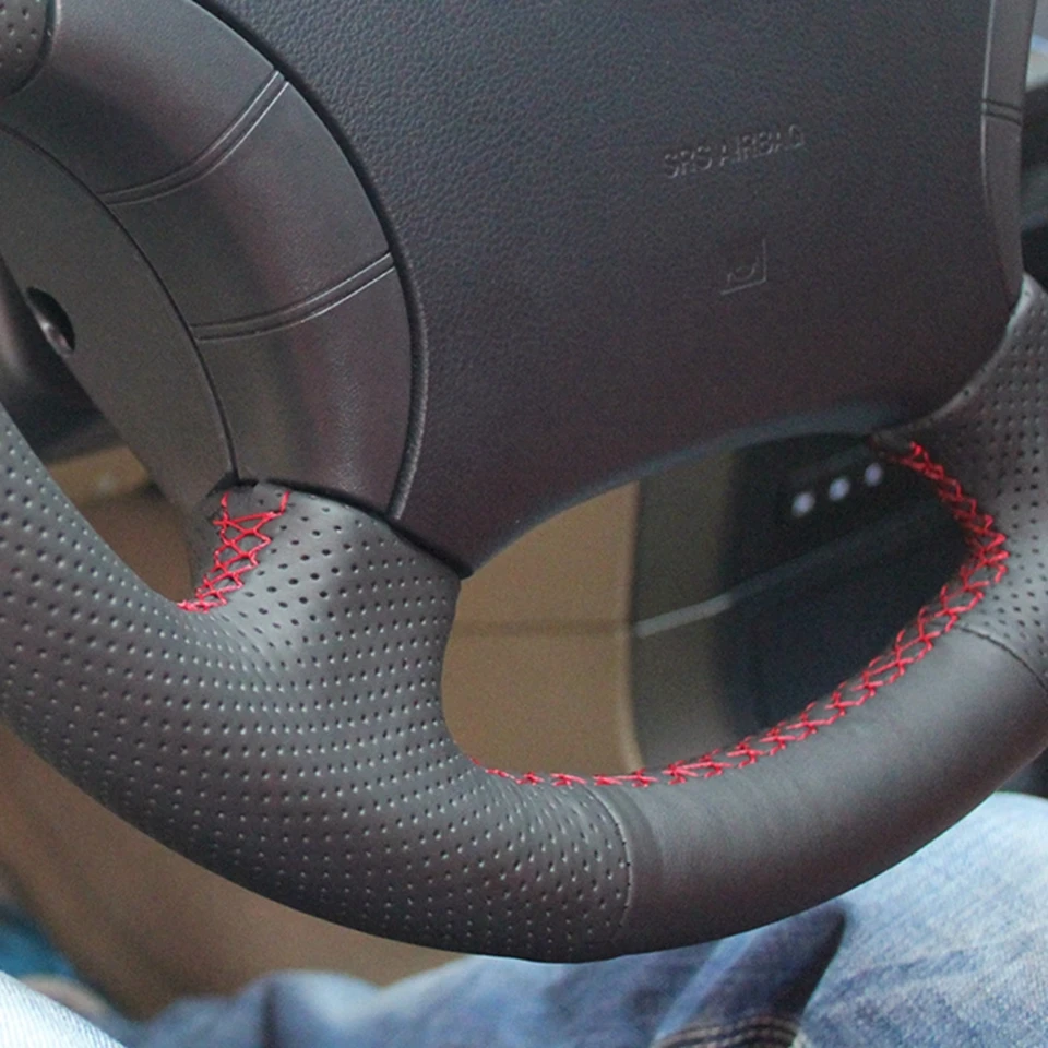 Чехол рулевого колеса автомобиля черная искусственная кожа красный ...
