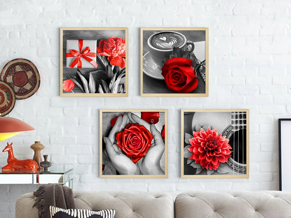 AZQSD домашний декор алмазная живопись, красные цветы черно-белые р...