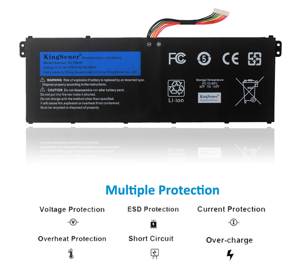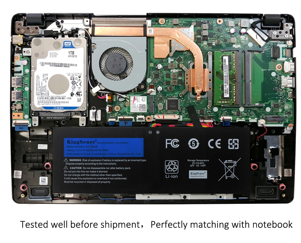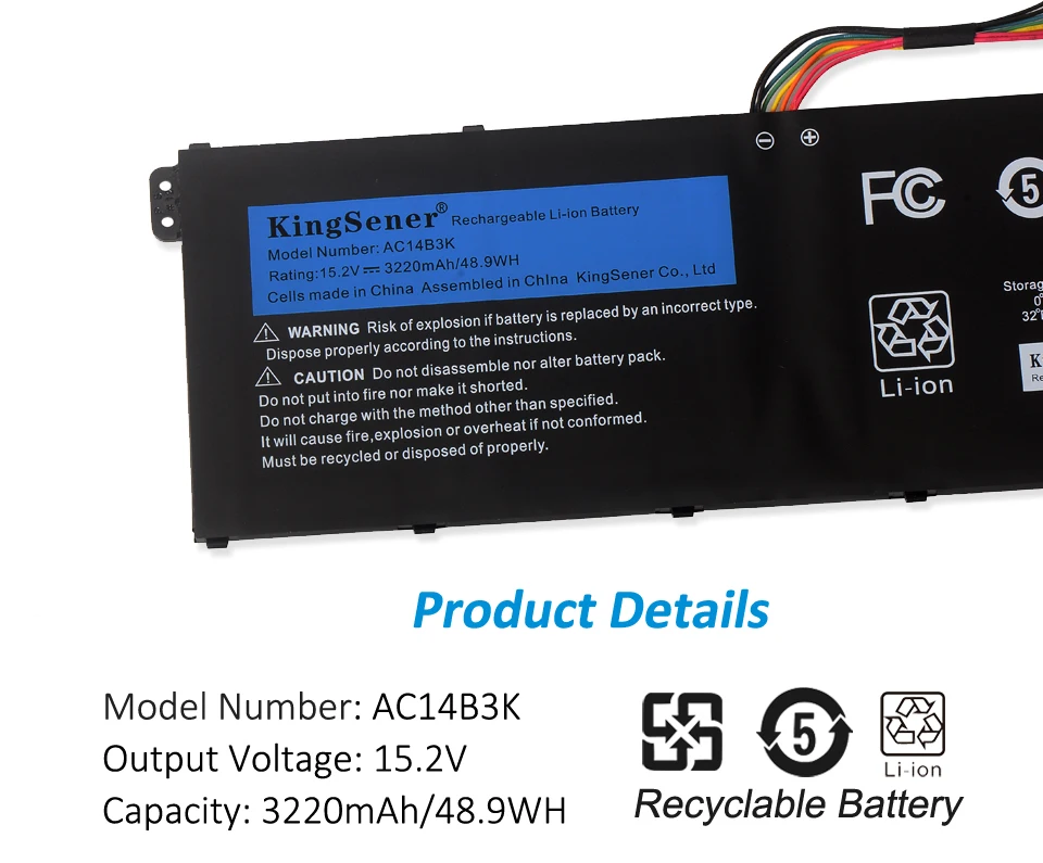 Аккумулятор KingSener AC14B3K для ноутбука Acer Aspire R5-571T, R5-571TG, S14, CB3-511, Swift 3, SF314-51, R, 11, R3-131T, S14, 15,2 в, 3220 мАч
