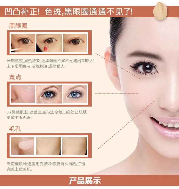 遮瑕膏 5 色可选 外贸爆款 时尚彩妆 自然遮瑕淡化皱纹黑眼圈 批发色差说明:因拍照的背景.光线.及电脑显示器还原度的不同而造成的商品色差和色彩会有所不同,不在可控范围内,不属于质量问题.商品以实物为准.基本都是手工加工而成,对色差及小瑕疵很在意的请仔细考虑后再决定是否订购.
