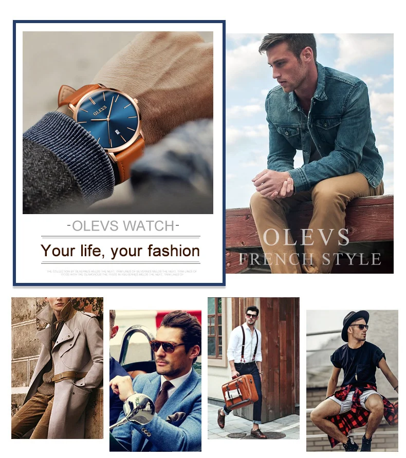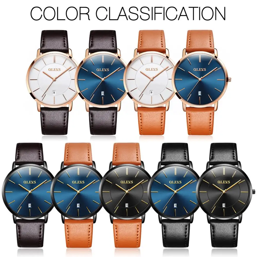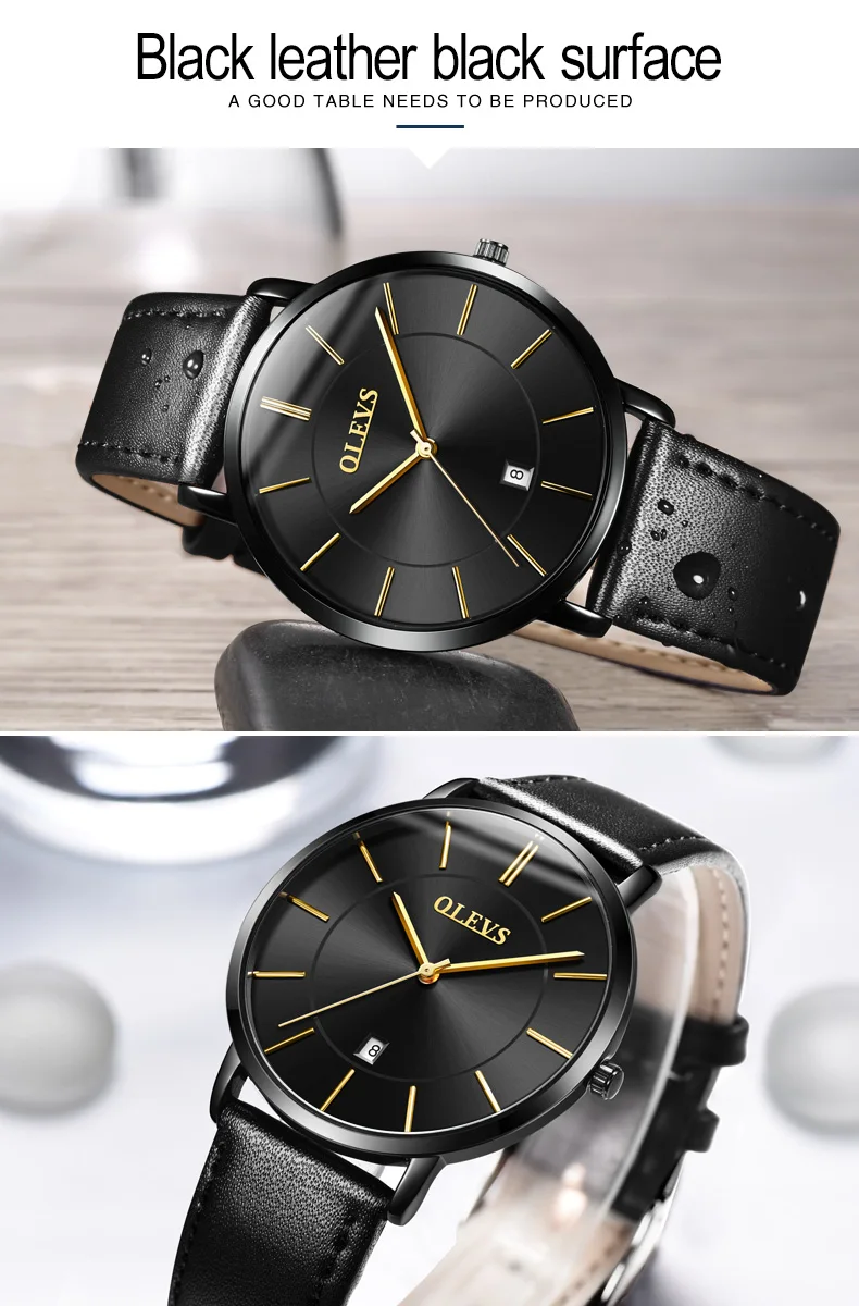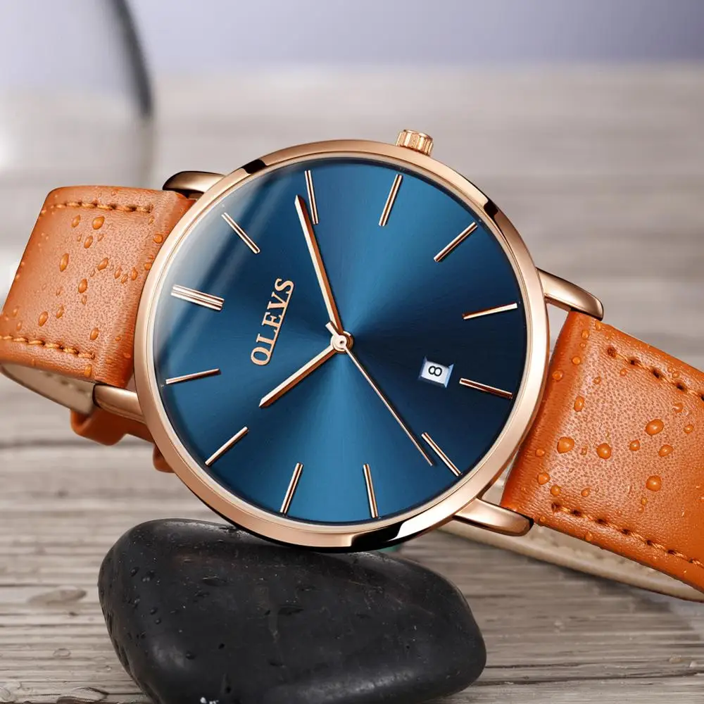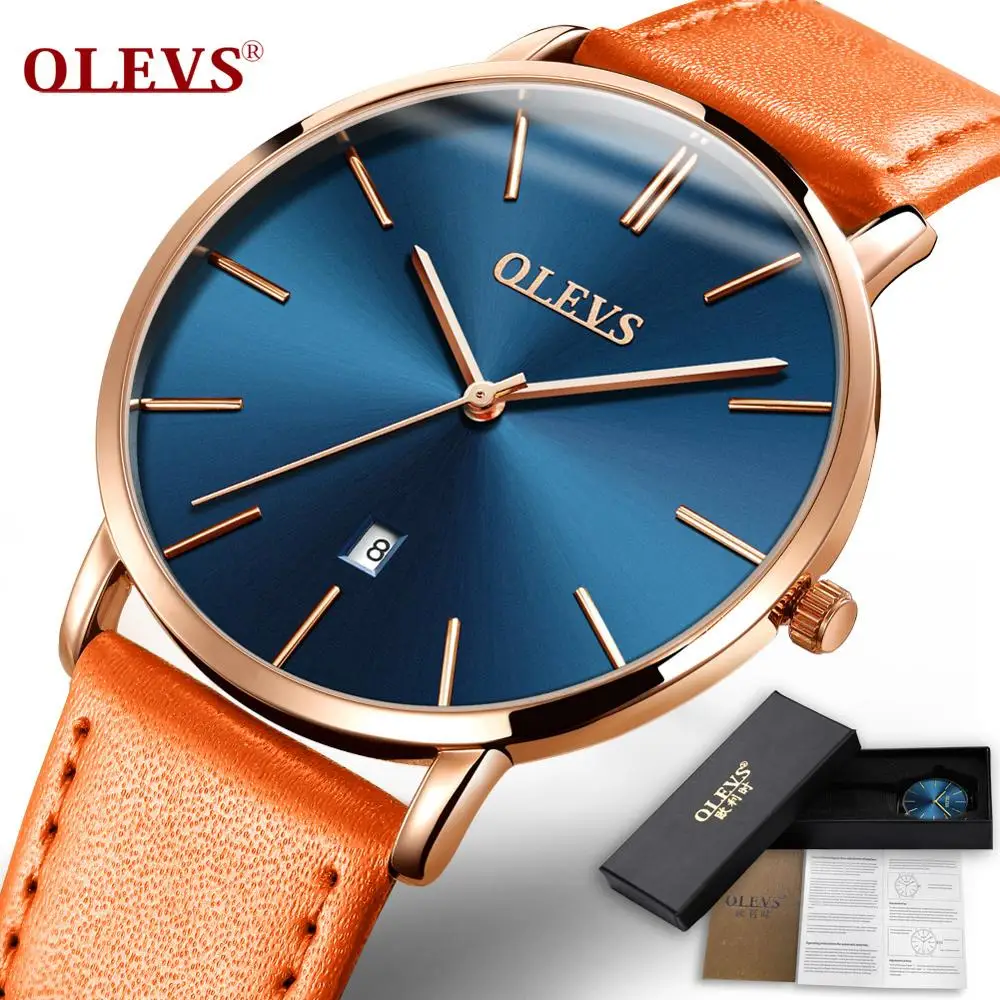 OLEVS часы мужские, модные, спортивные, из нержавеющей стали, Ультратонкий чехол, кожаный ремешок, часы, кварцевые, деловые наручные часы