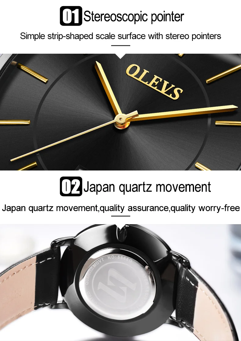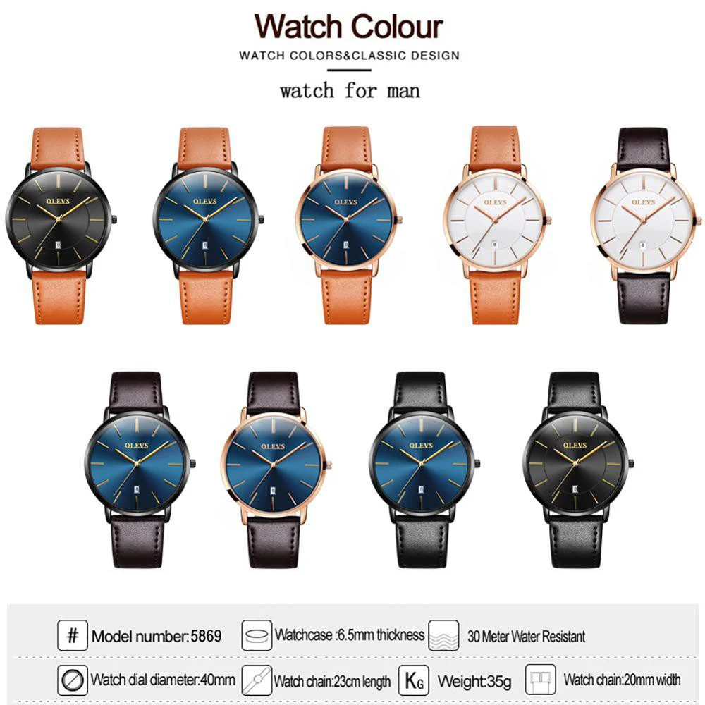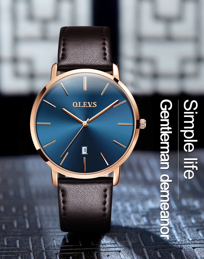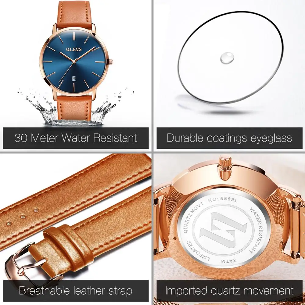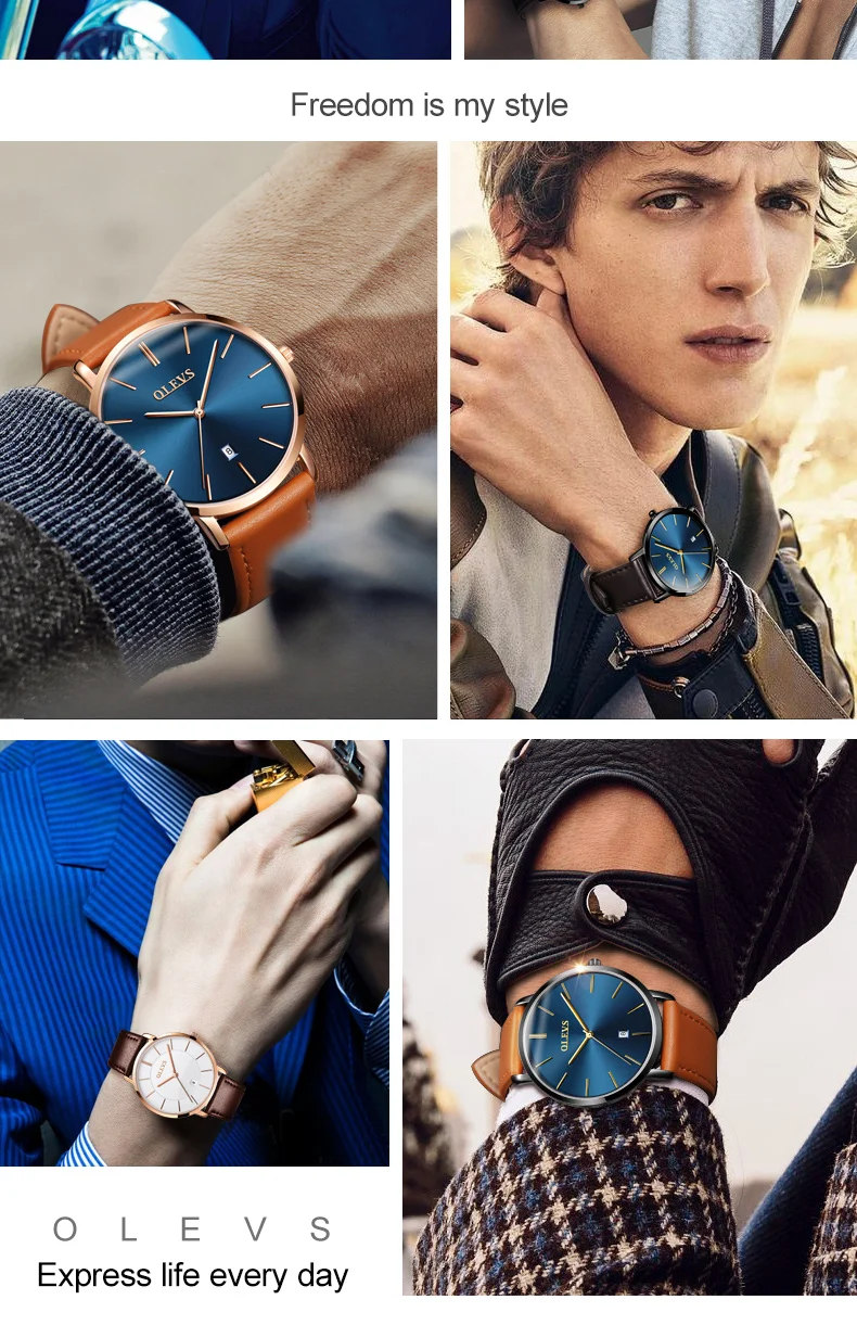 OLEVS часы мужские, модные, спортивные, из нержавеющей стали, Ультратонкий чехол, кожаный ремешок, часы, кварцевые, деловые наручные часы