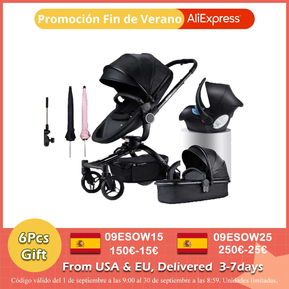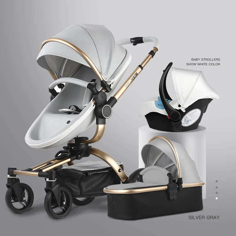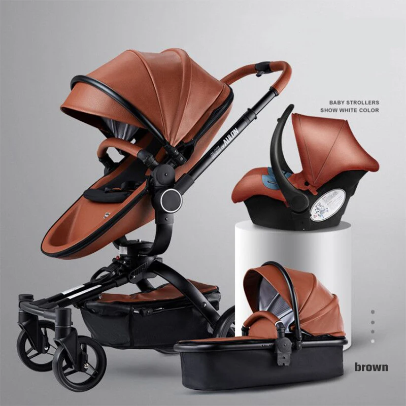 Коляска детская 3 в 1, 2 в 1, из искусственной кожи, 2021