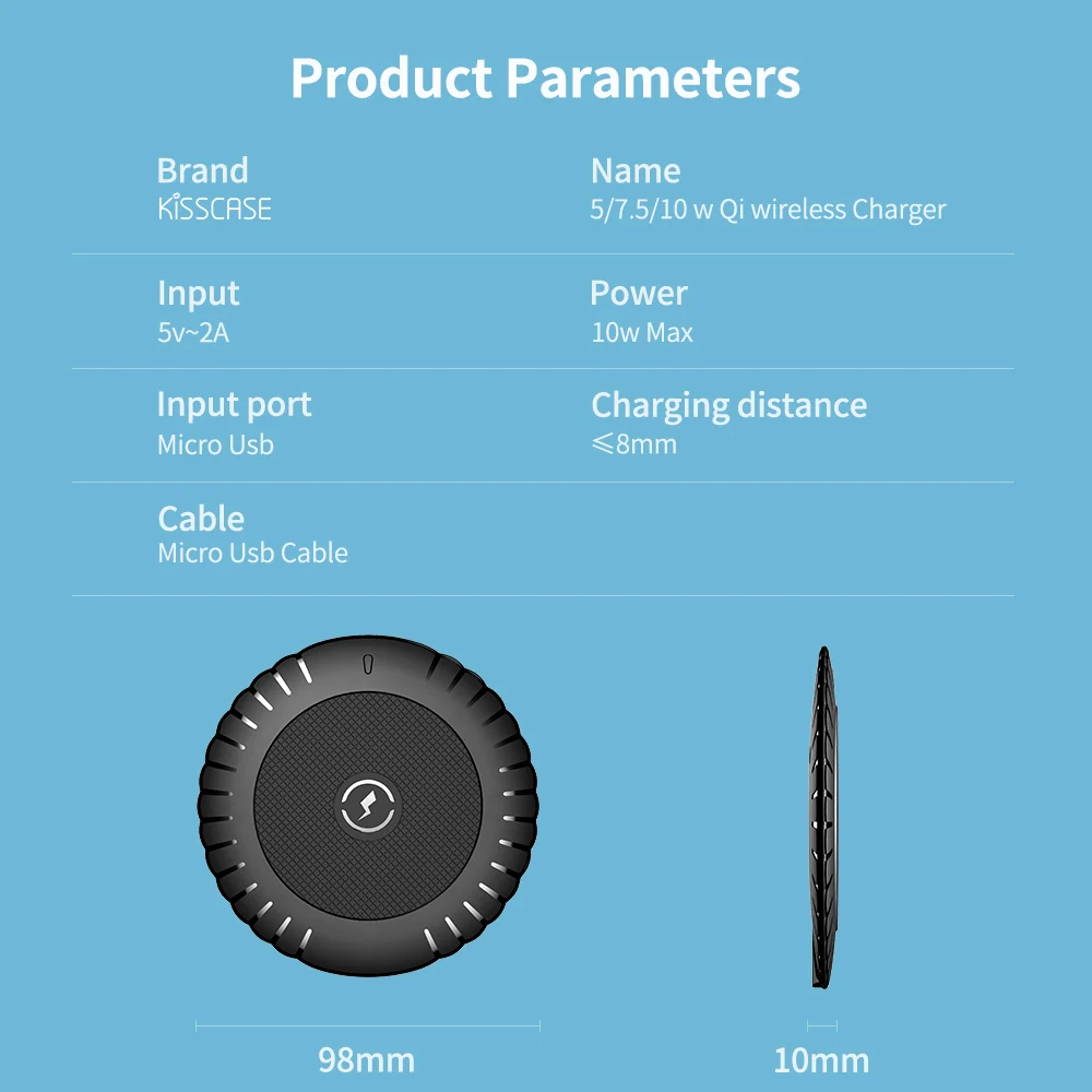 KISSCASE Qi Беспроводное зарядное устройство для samsung Note 10 9 8 S10 Plus S9 S8 10 Вт беспроводное быстрое зарядное устройство для iPhone XS XR X 8 plus xs max безпроводная зарядка