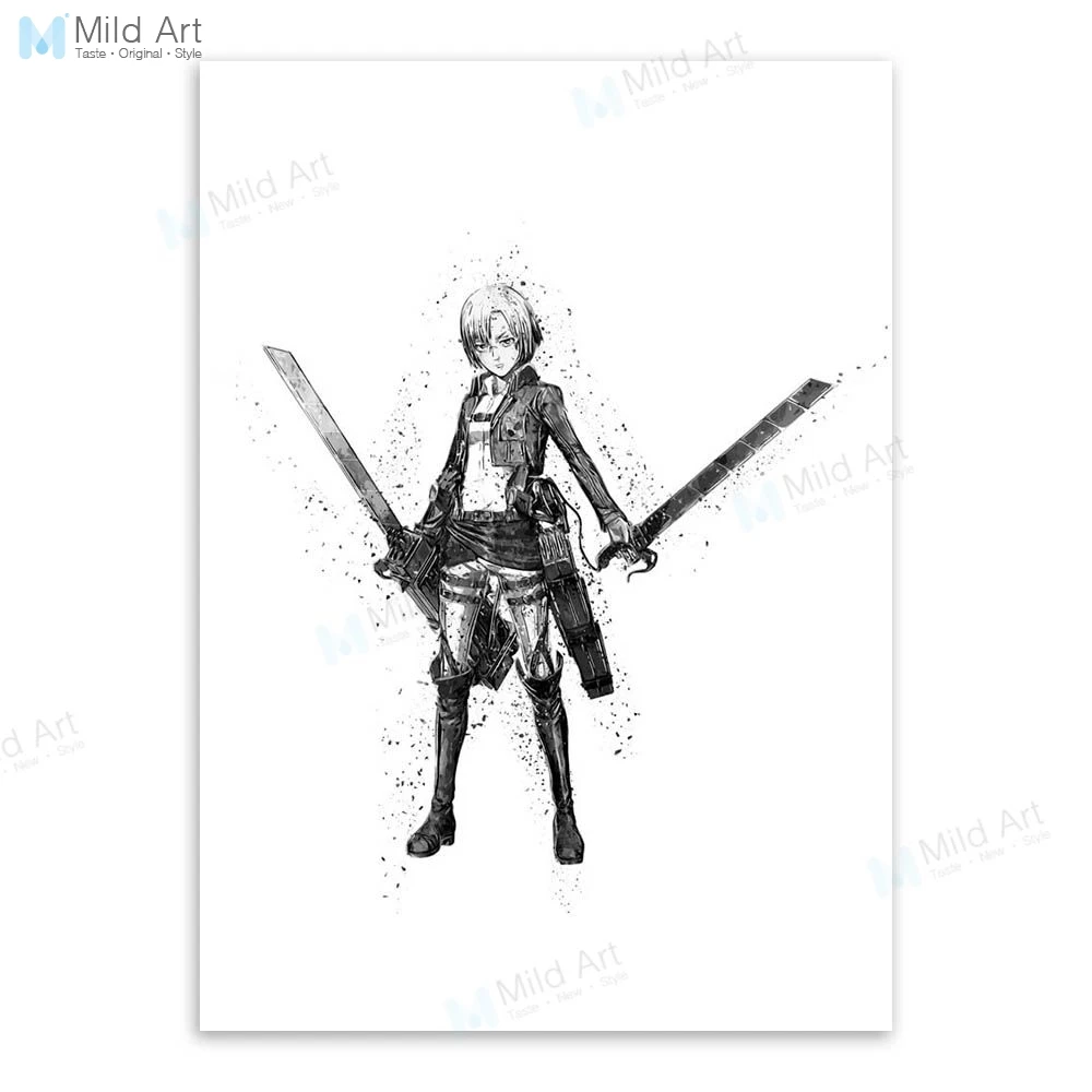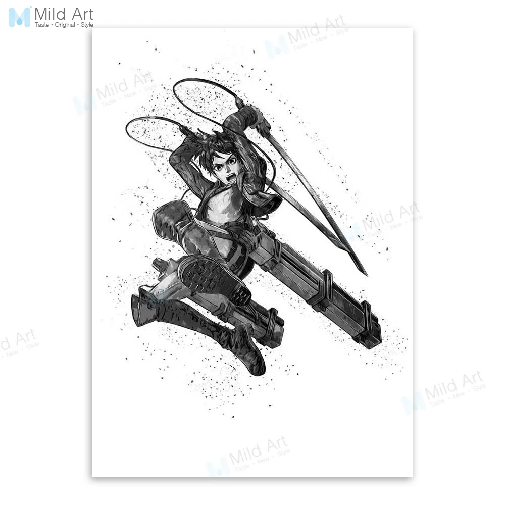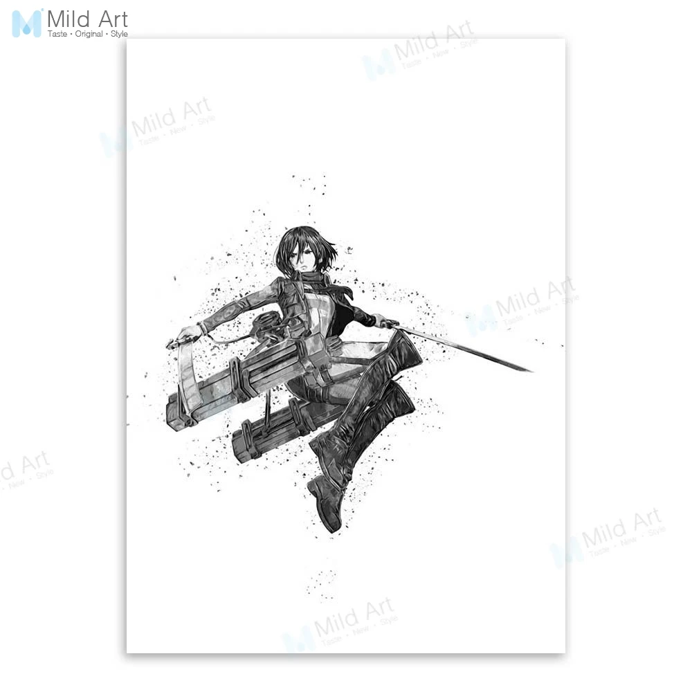 Черно-белые абстрактные геометрические изображения японского Поп аниме Titan Levi, печатные плакаты Mikasa, настенные художественные картины, домашний декор, Картина на холсте