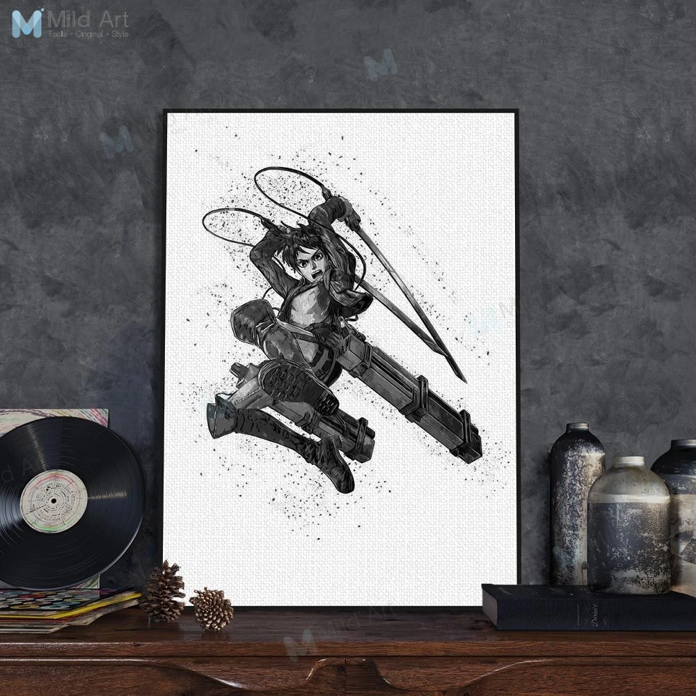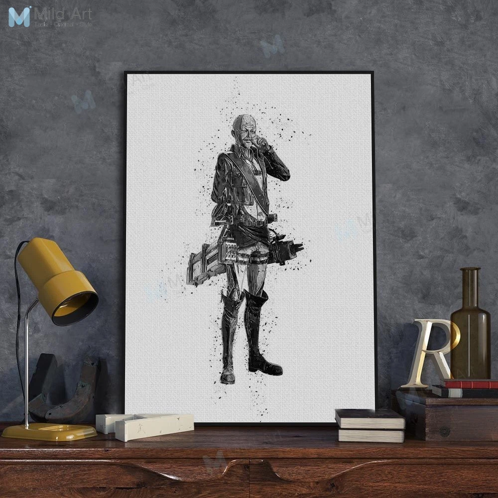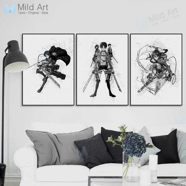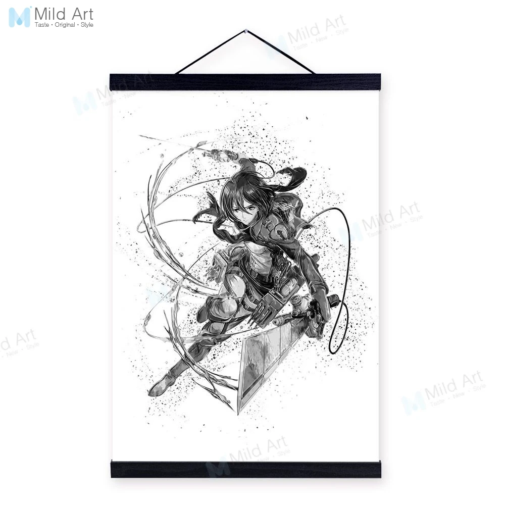 Черно-белые абстрактные геометрические изображения японского Поп аниме Titan Levi, печатные плакаты Mikasa, настенные художественные картины, домашний декор, Картина на холсте