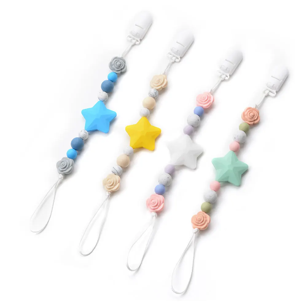 Зажим для прорезывателя зубов LOFCA, 1 шт., из силикона, без БФА, детские игрушки для прорезывания зубов, ожерелье с бусинами в форме цветов держатель для переноски, короткая цепочка