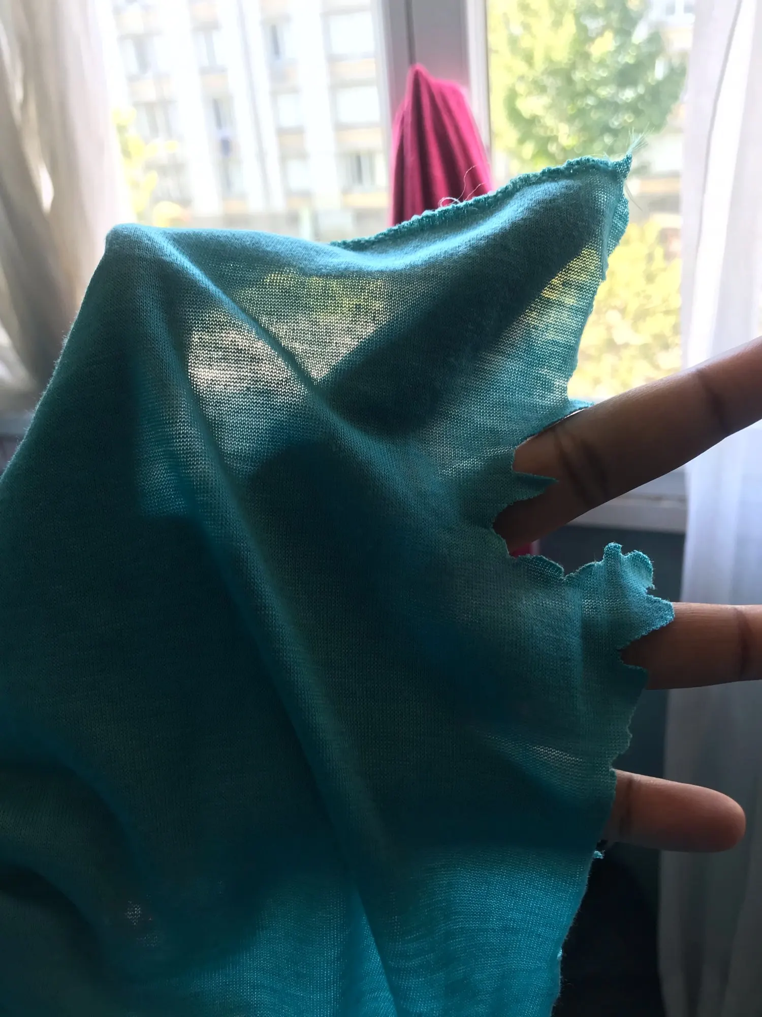 Ткань хорошая, но цвет не синий, как на фото, а темно-зеленый. И затяжка на ткани. В целом палантин хороший - взяла 3 штуки разных цветов. Остальные 2 пришли в полном порядке и по цвету и по ткани.