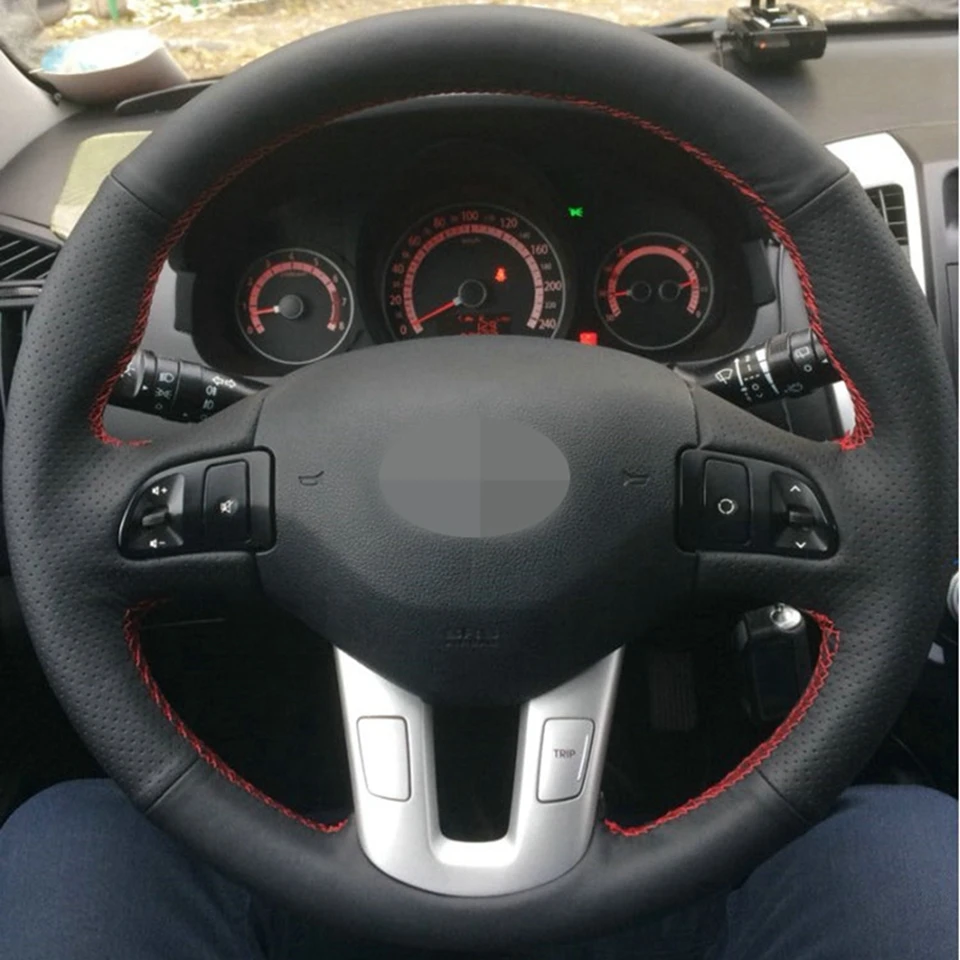 DIY ручной работы черного цвета из искусственной кожи прошитая вручную Чехлы рулевого колеса автомобиля для Kia Sportage 3th 2011-2014 Kia Ceed 2010