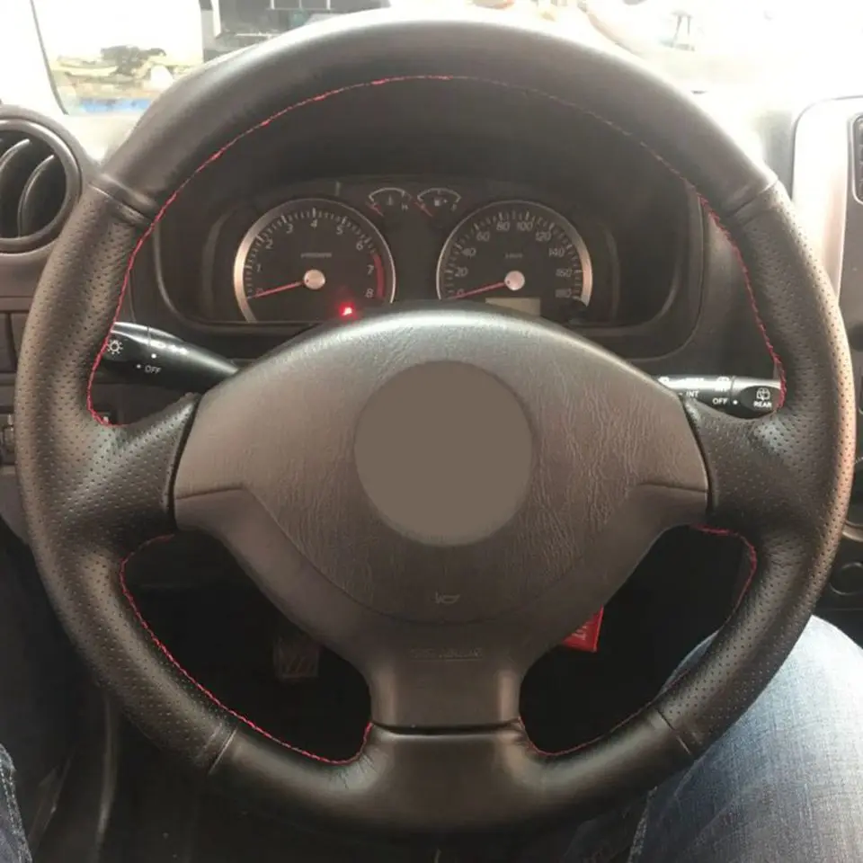 Чехол на руль из черной искусственной кожи, прошитый вручную чехол на руль автомобиля для Suzuki Jimny 2007-2012