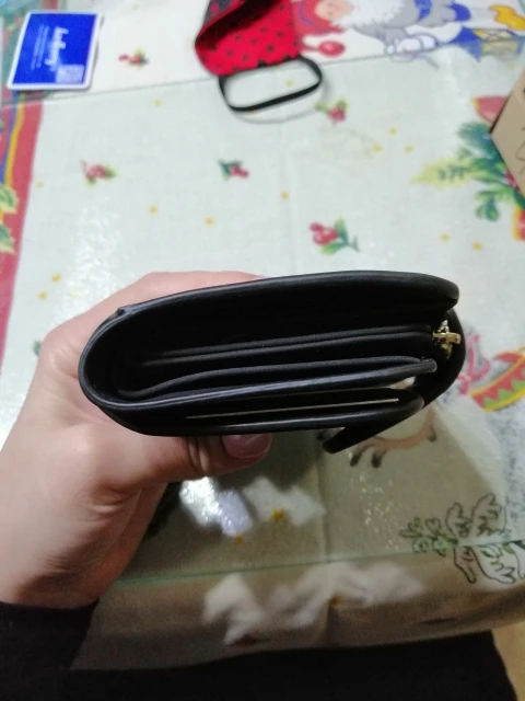 кошелек неплохой, маленький, компактный, но все отлично поместилось. неудачно вшита молния в отделении для мелочи, из-за чего ее сложно открыть.